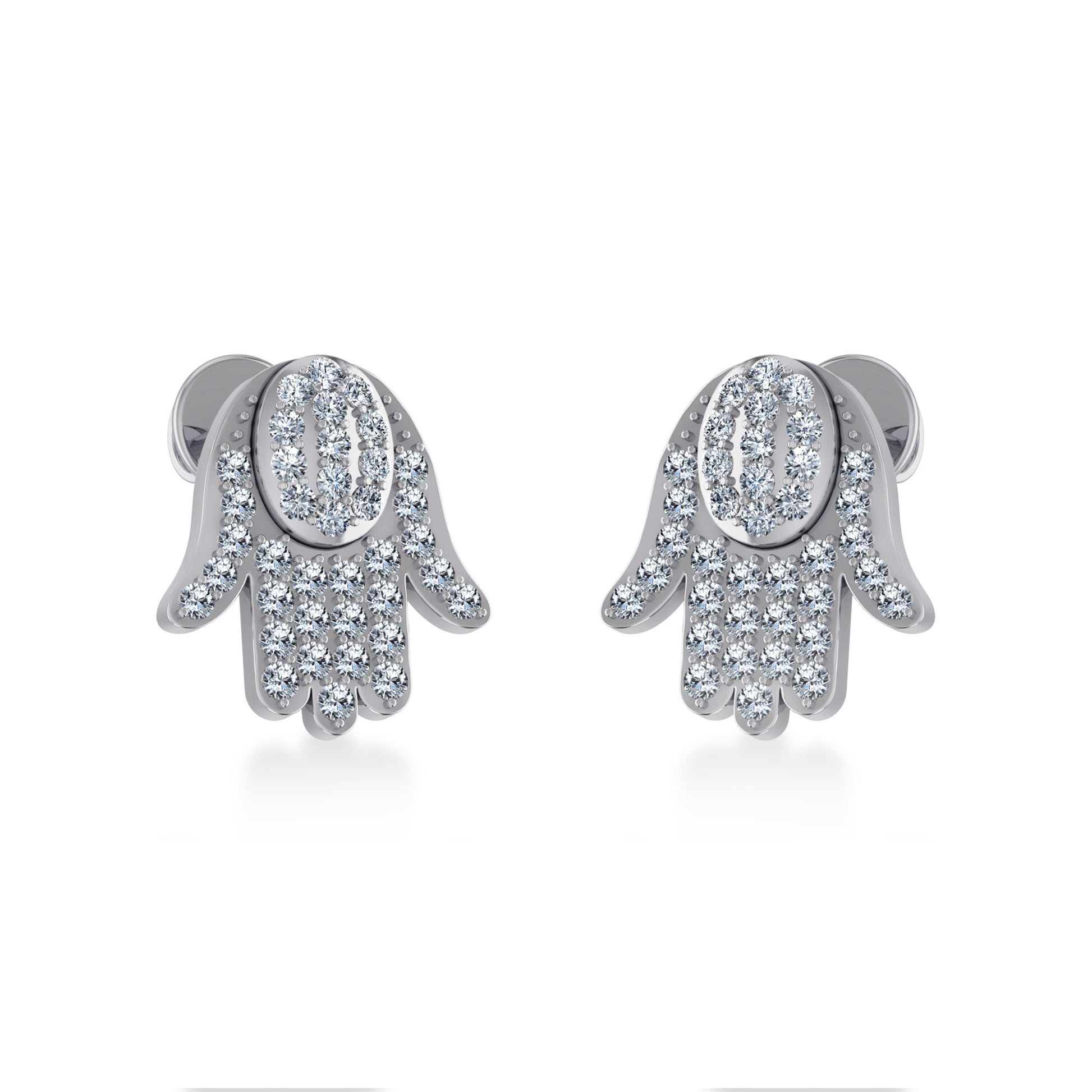 10K White Gold Round Baguette Diamond Hamza Hand Religious Stud Earring 1/5 Cttw