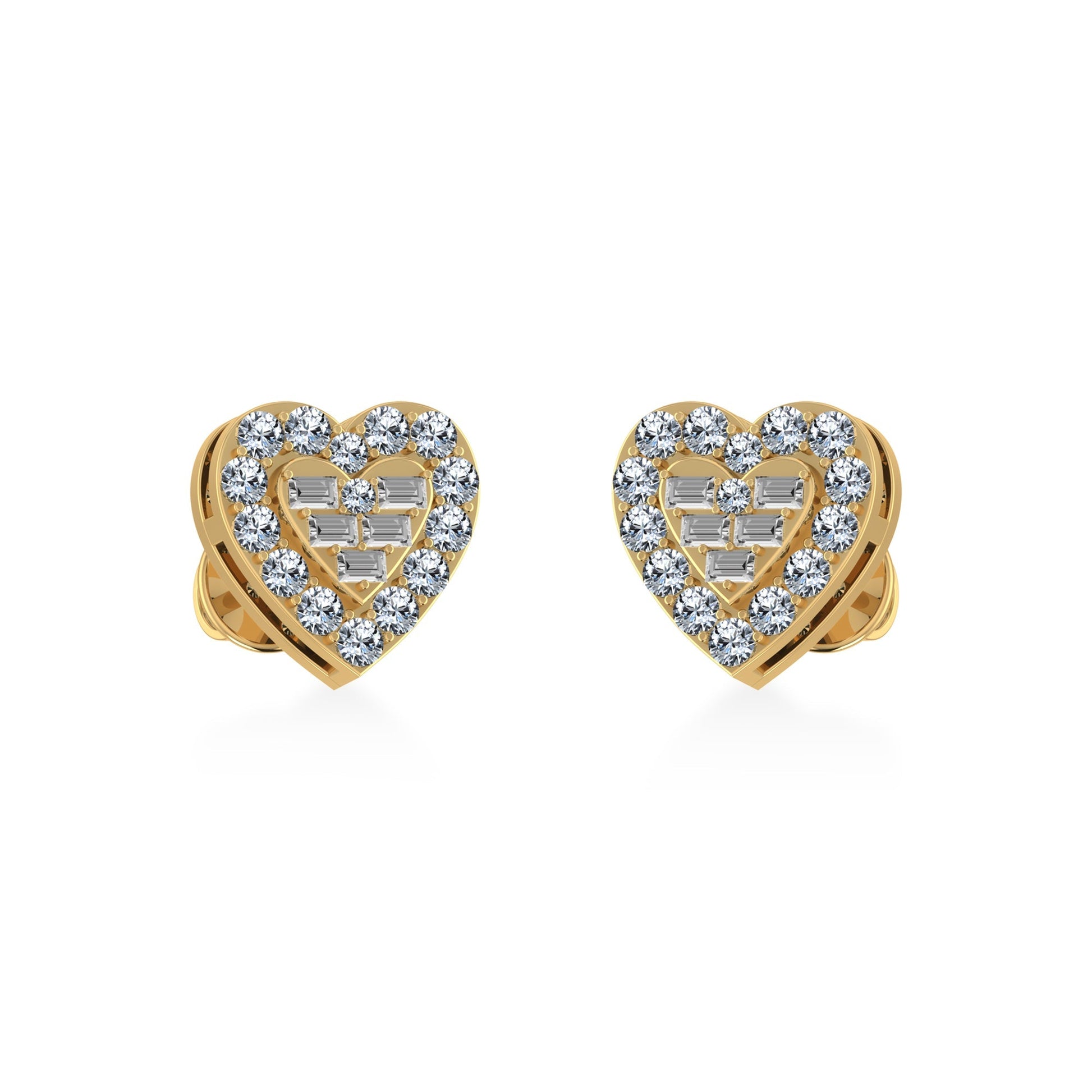 10K Yellow Gold Round Baguette Diamond Heart Shape Stud Earrings 3/8 Cttw
