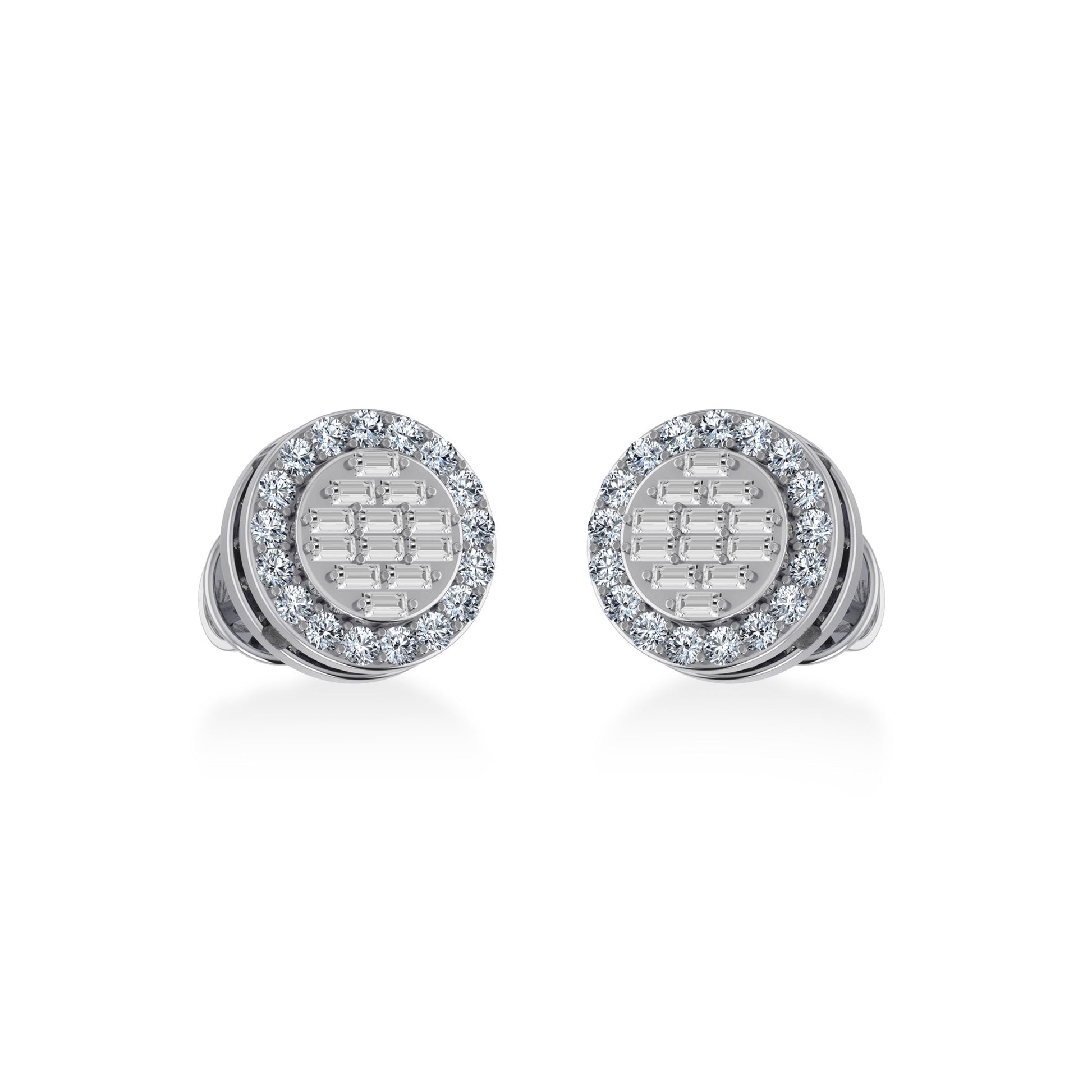 10K White Gold Round Baguette Diamond Stud Earring 1/3 Cttw
