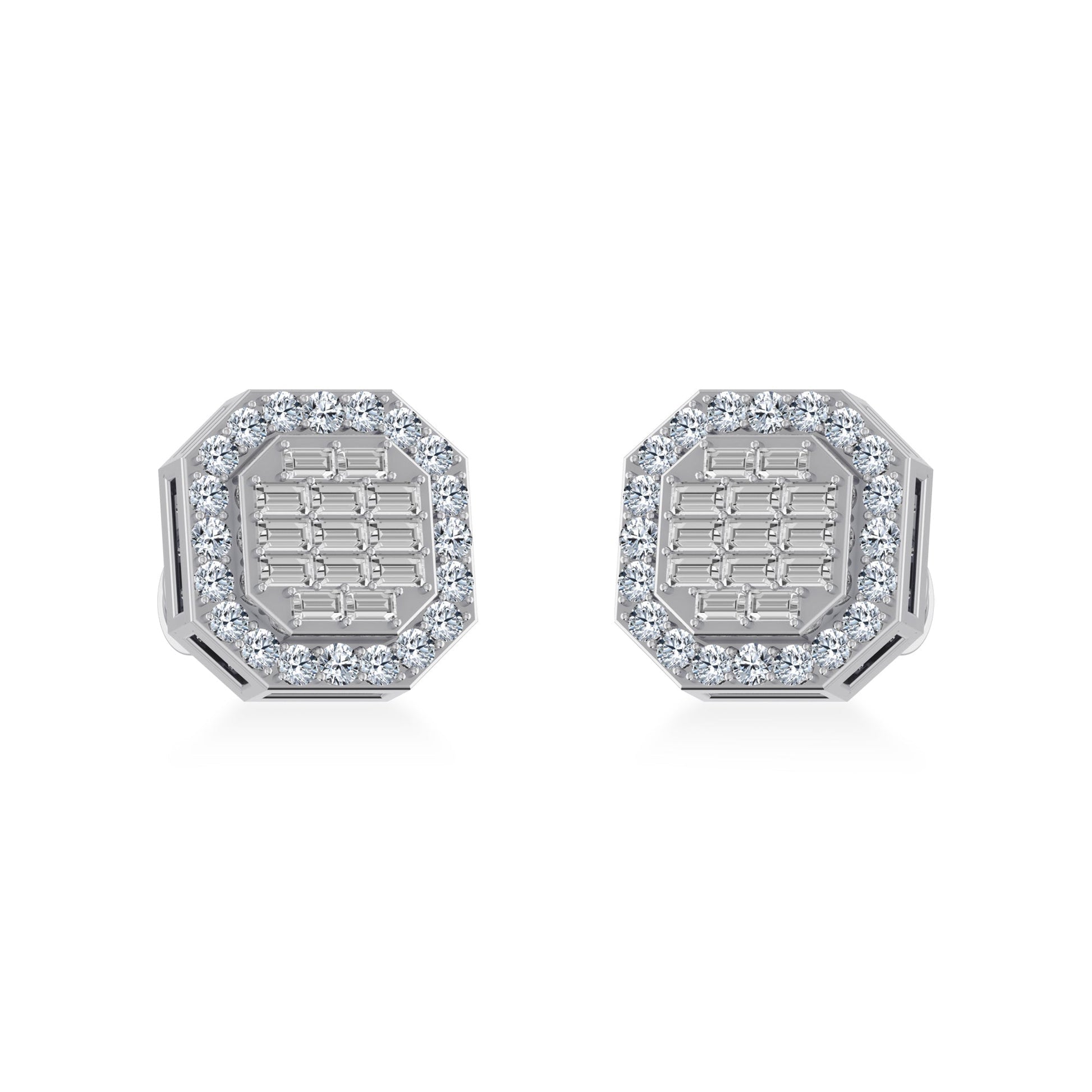 10K White Gold Diamond Designer Stud Earring 1/2 Cttw