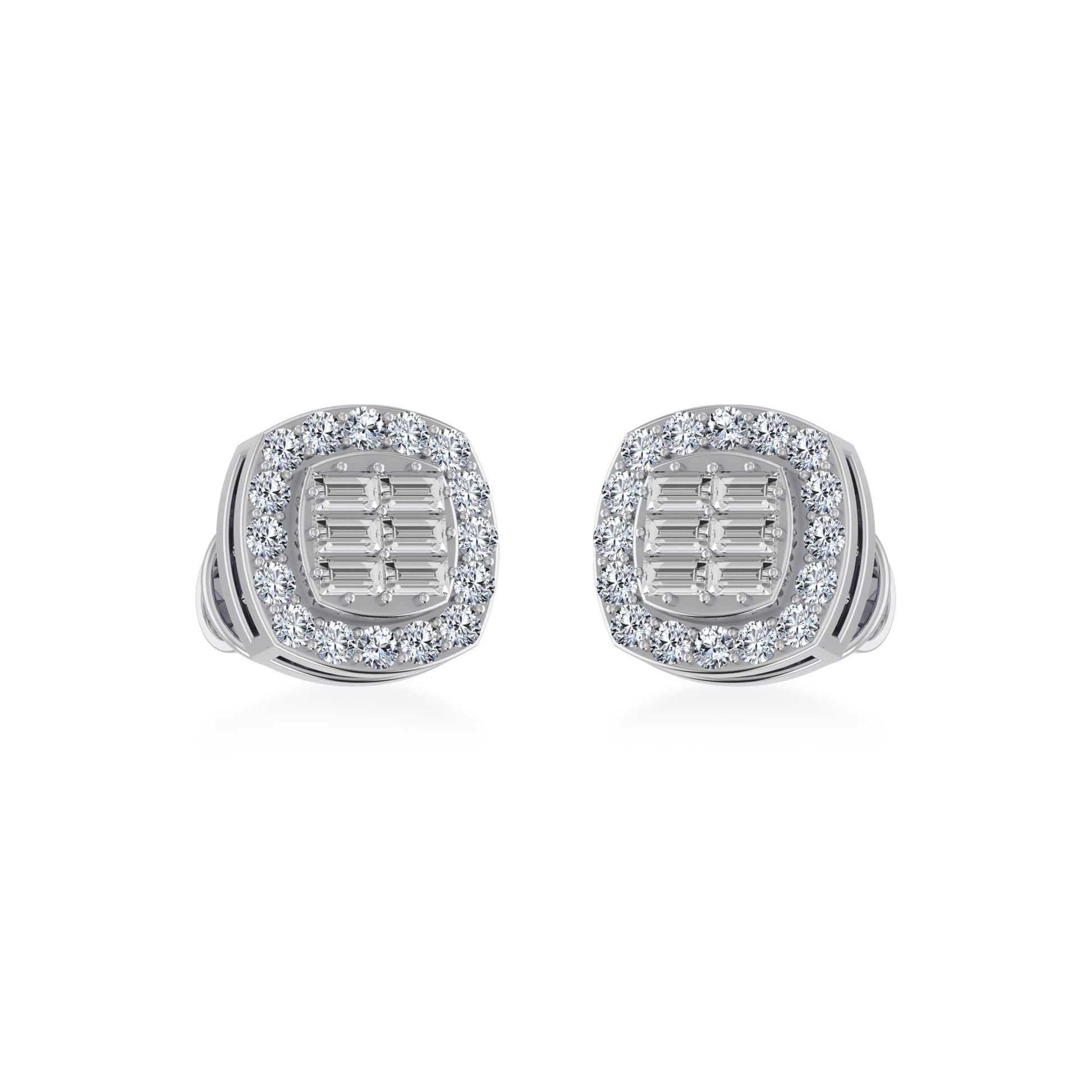 10K White Gold Round Baguette Diamond Stud Earring 1/3 Cttw