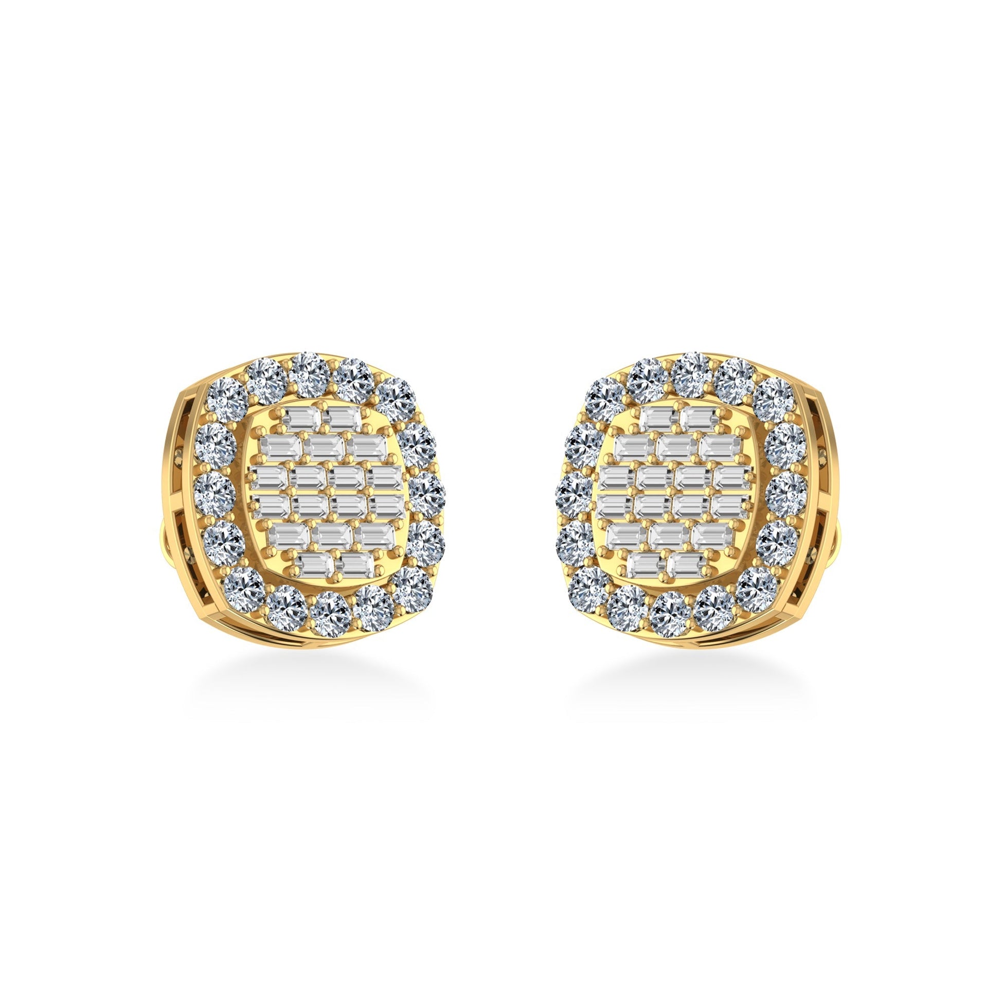 10K Yellow Gold Round Baguette Diamond Stud Earrings 1 Cttw