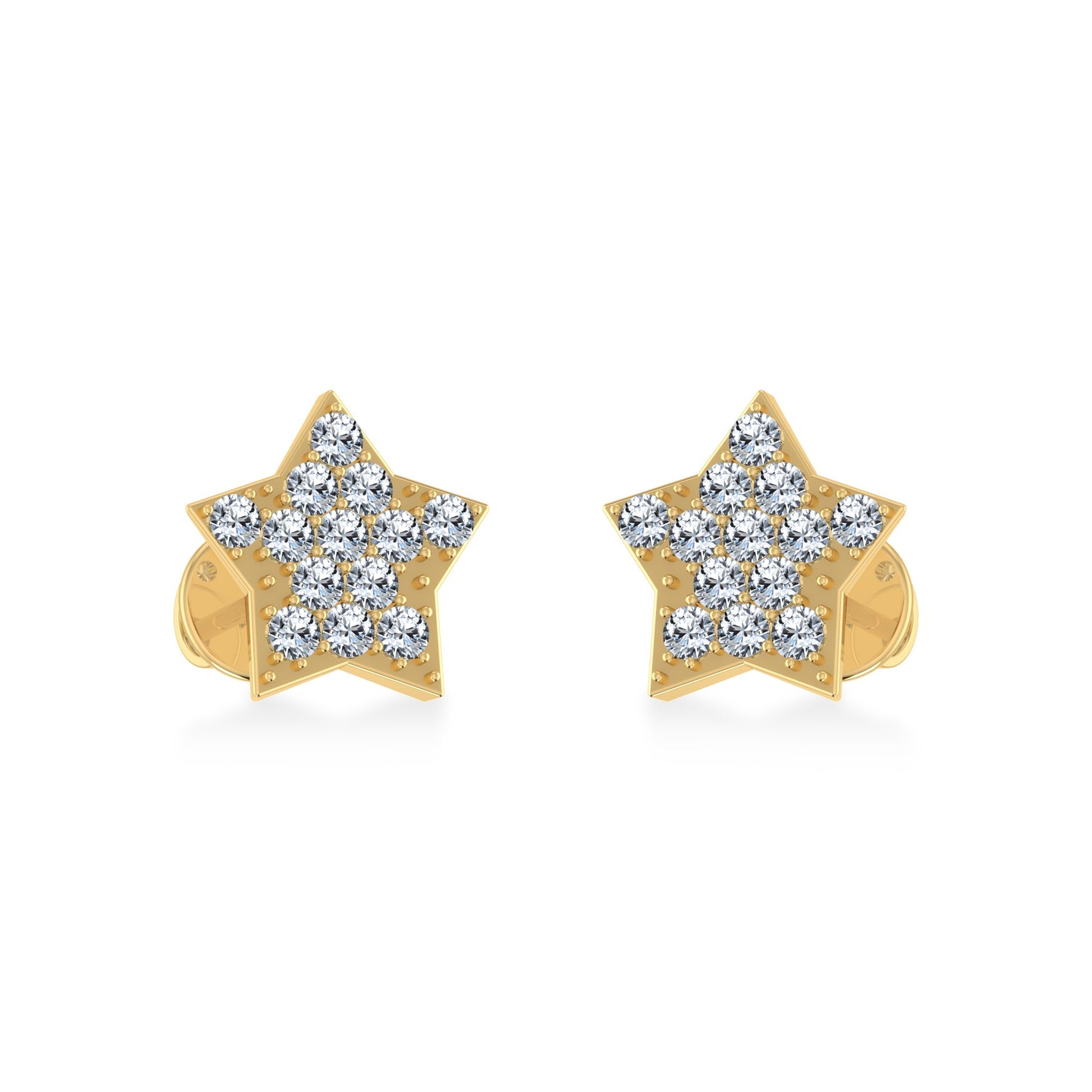 10K Yellow Gold Round Diamond Star Stud Earring 1/8 Cttw