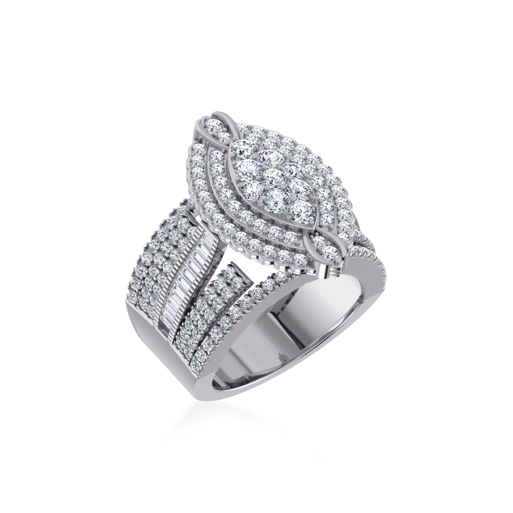 10K White Gold Round Baguette Diamond Womens Sz 7 Designer Bridal Ring 2-3/8 Cttw