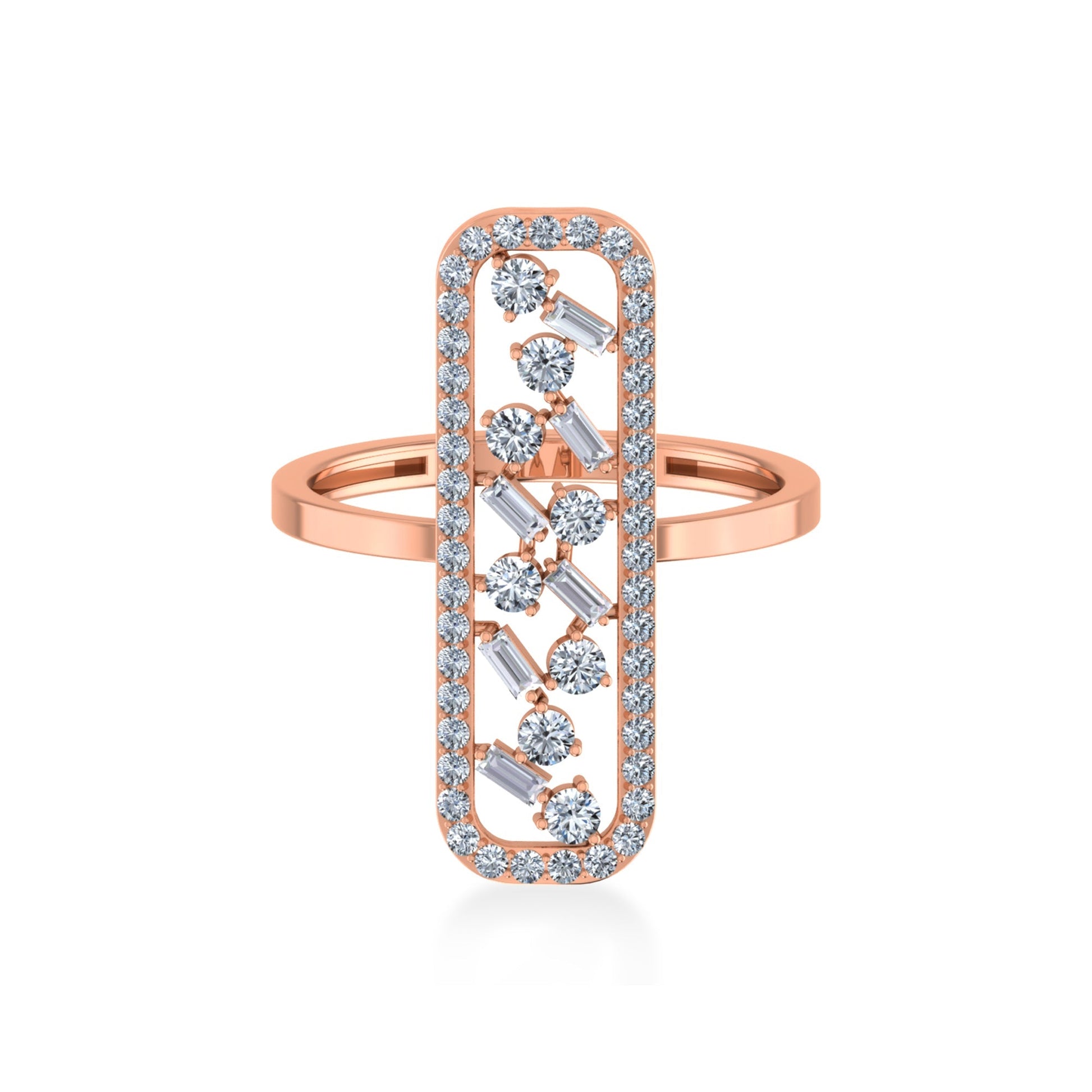 14K Rose Gold Round Baguette Diamond Womens Designer Ring 5/8 Cttw