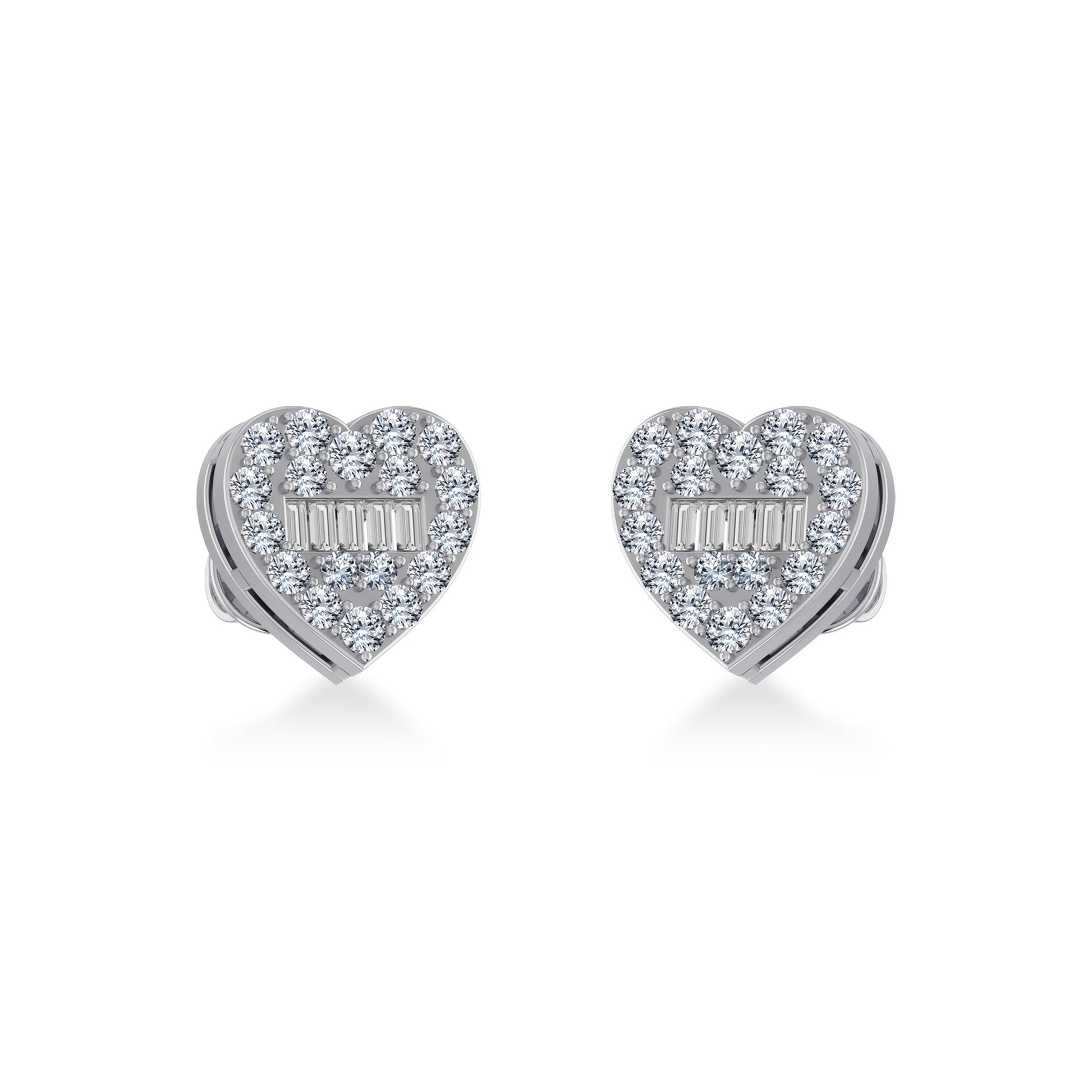 14K White Gold Round Baguette Diamond Heart Shape Cluster Stud EarRing 3/8 Cttw
