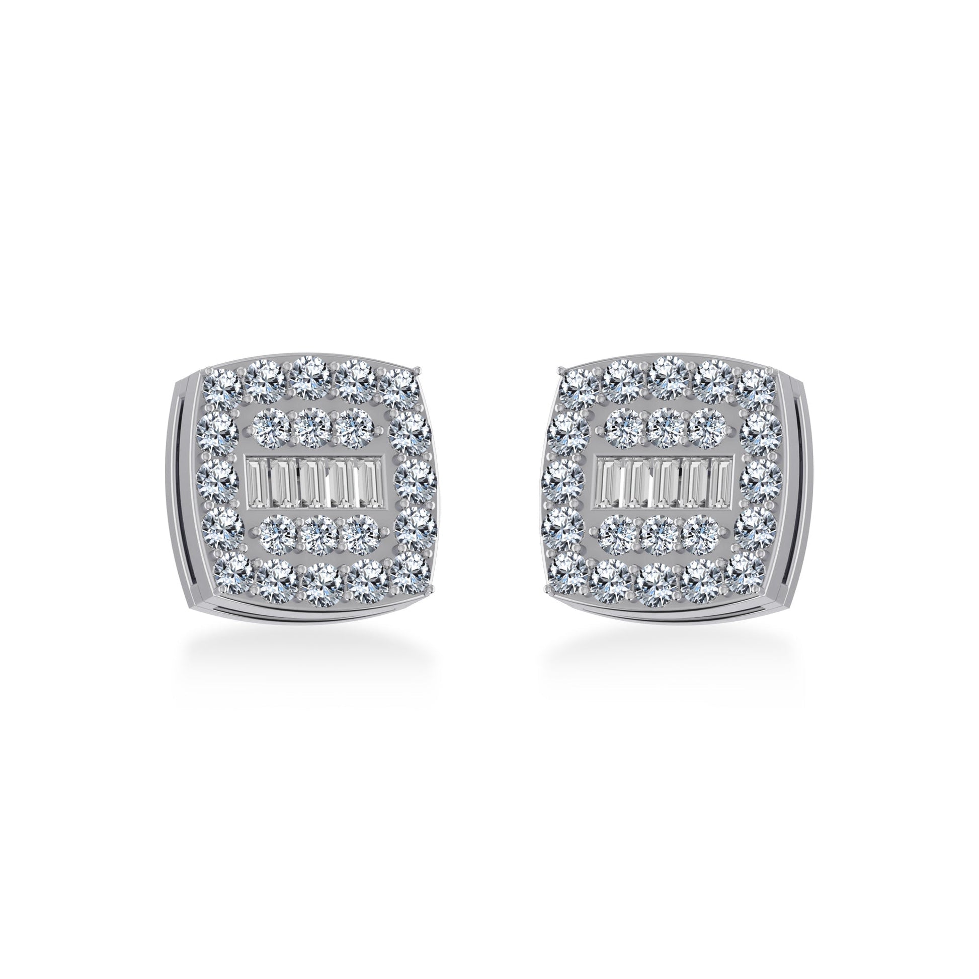 14K White Gold Round Baguette Diamond Square Shape Cluster Stud EarRing 1/2 Cttw