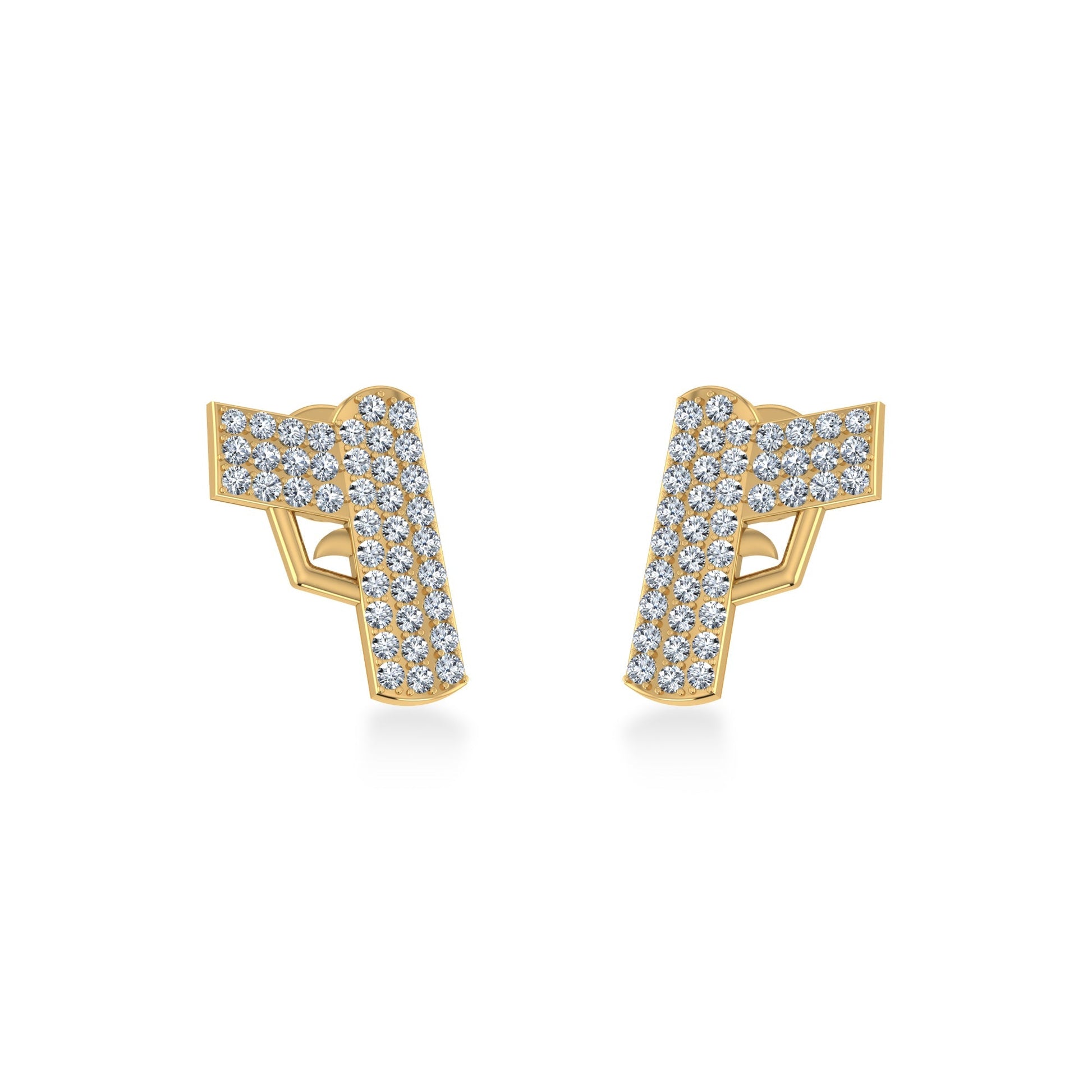 14K Yellow Gold Round Baguette Diamond Designer Stud Earring 1/5 Cttw
