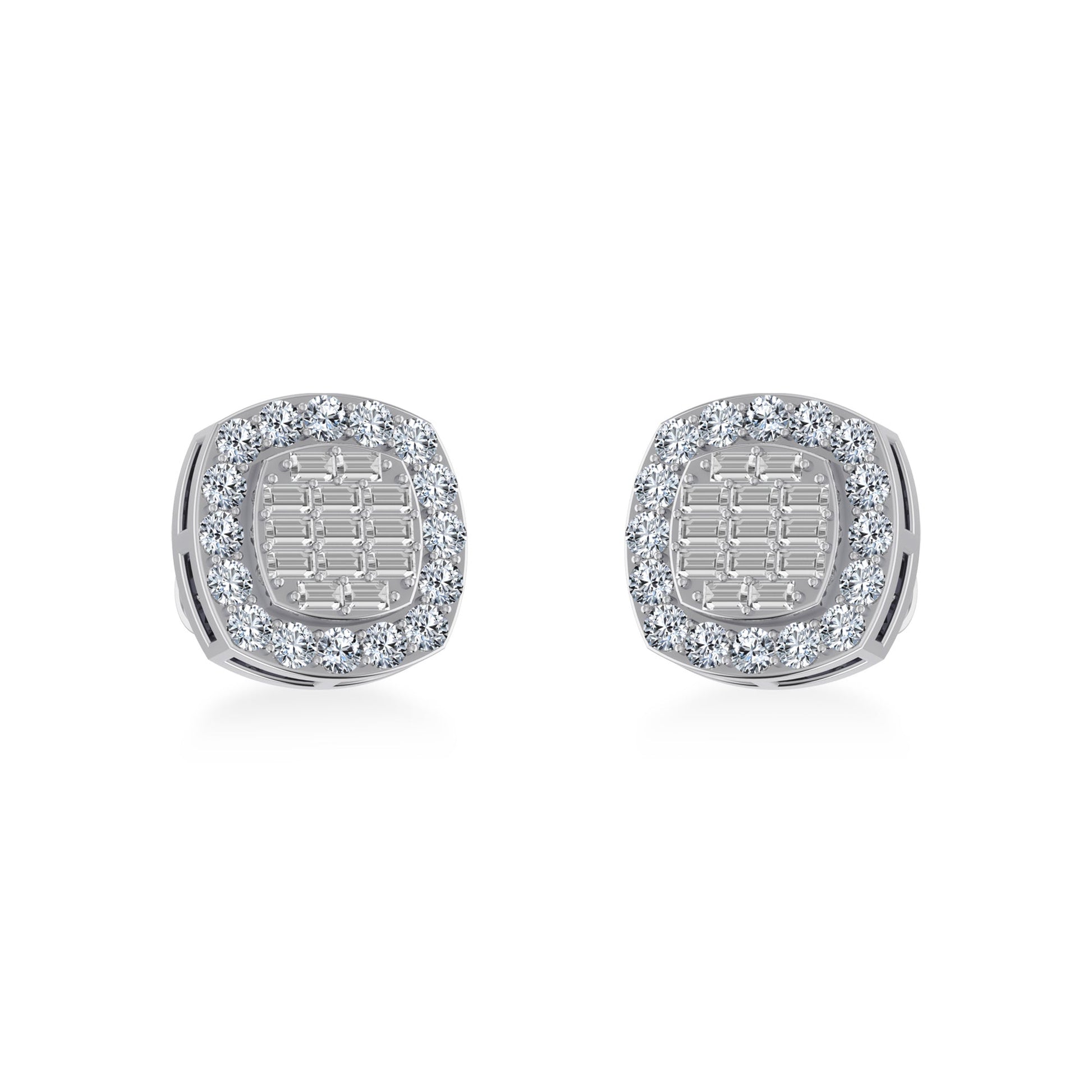 14K White Gold Round Baguette Diamond Stud Earring 5/8 Cttw