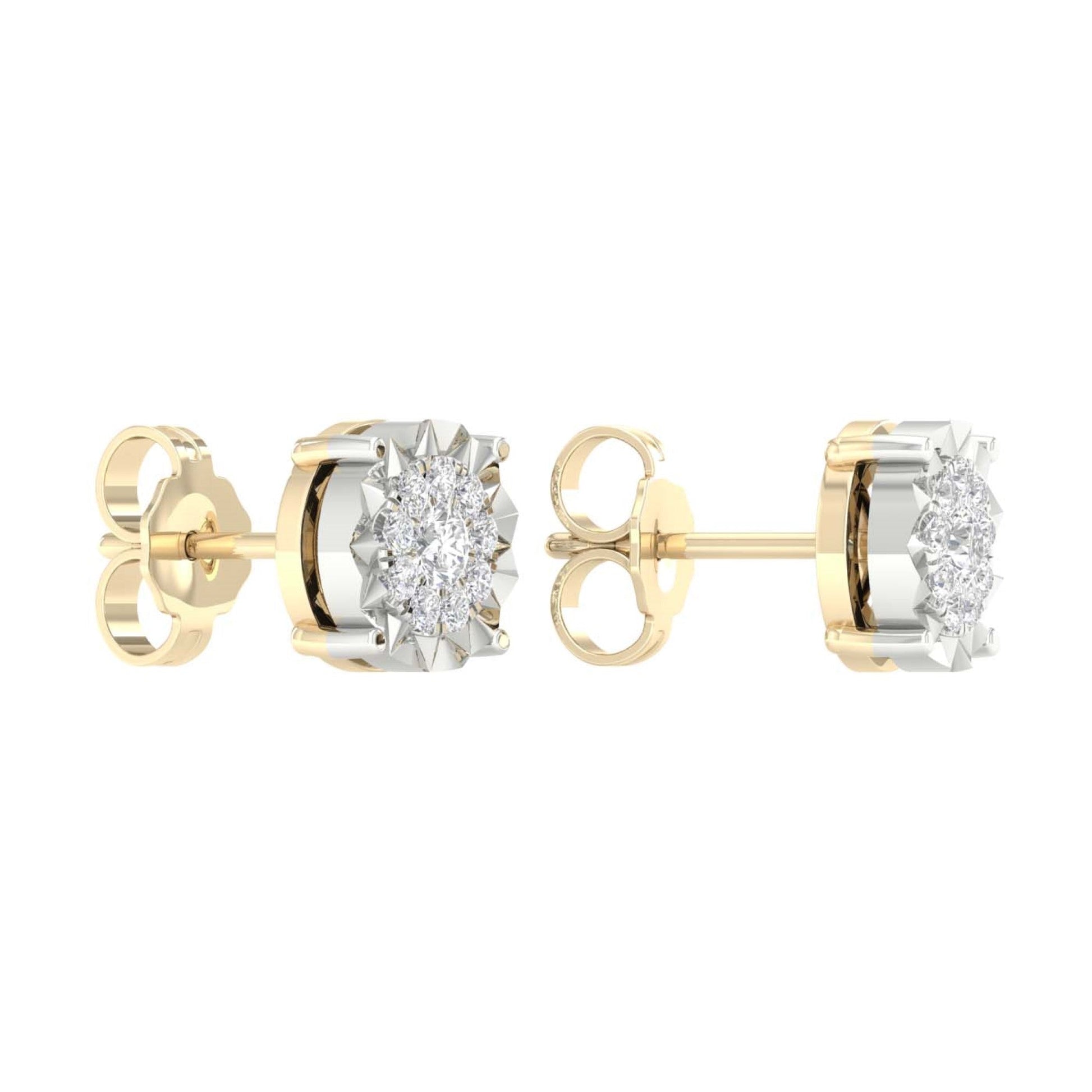 10K Yellow Gold Round Diamond Designer Stud Earrings 1/4 Cttw