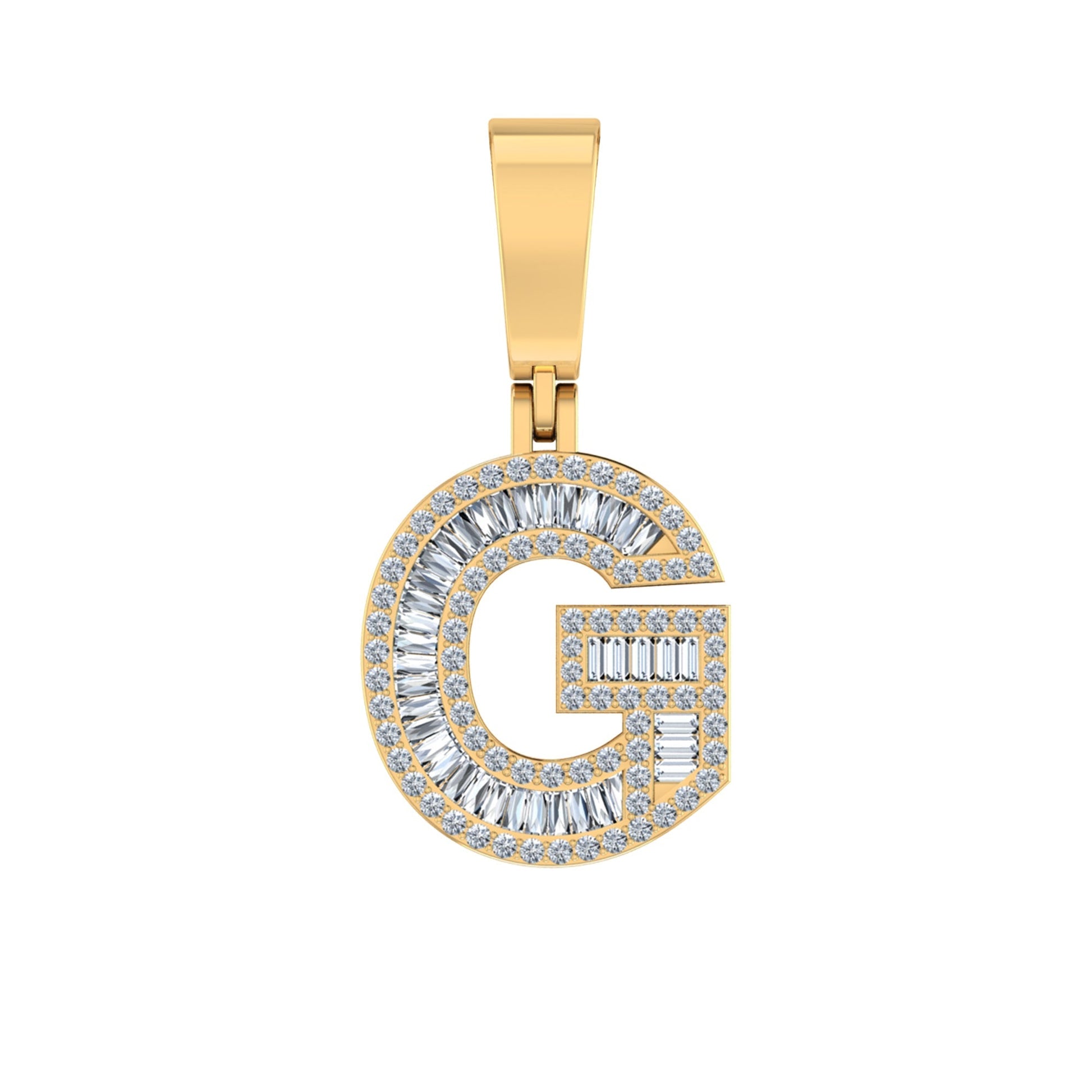 10K Yellow Gold Baguette Diamond Initial G Letter Pendant 1/2 Cttw