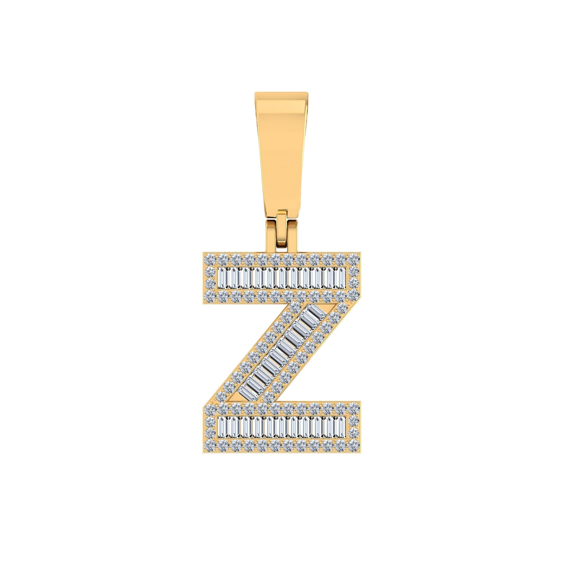 10K Yellow Gold Baguette Diamond Initial Z Letter Pendant 1/2 Cttw