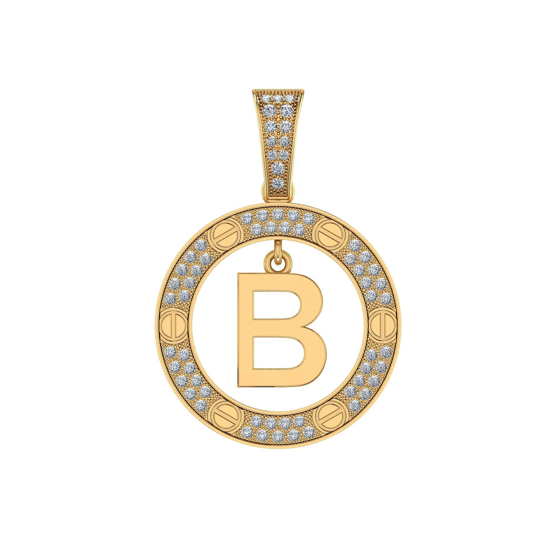 10K Yellow Gold Round Diamond B Letter Initial Pendant 1/5 Cttw