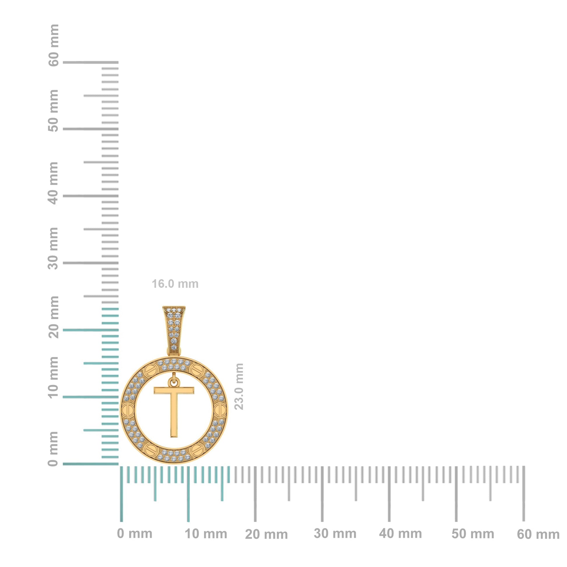 10K Yellow Gold Round Diamond T Letter Initial Pendant 1/5 Cttw