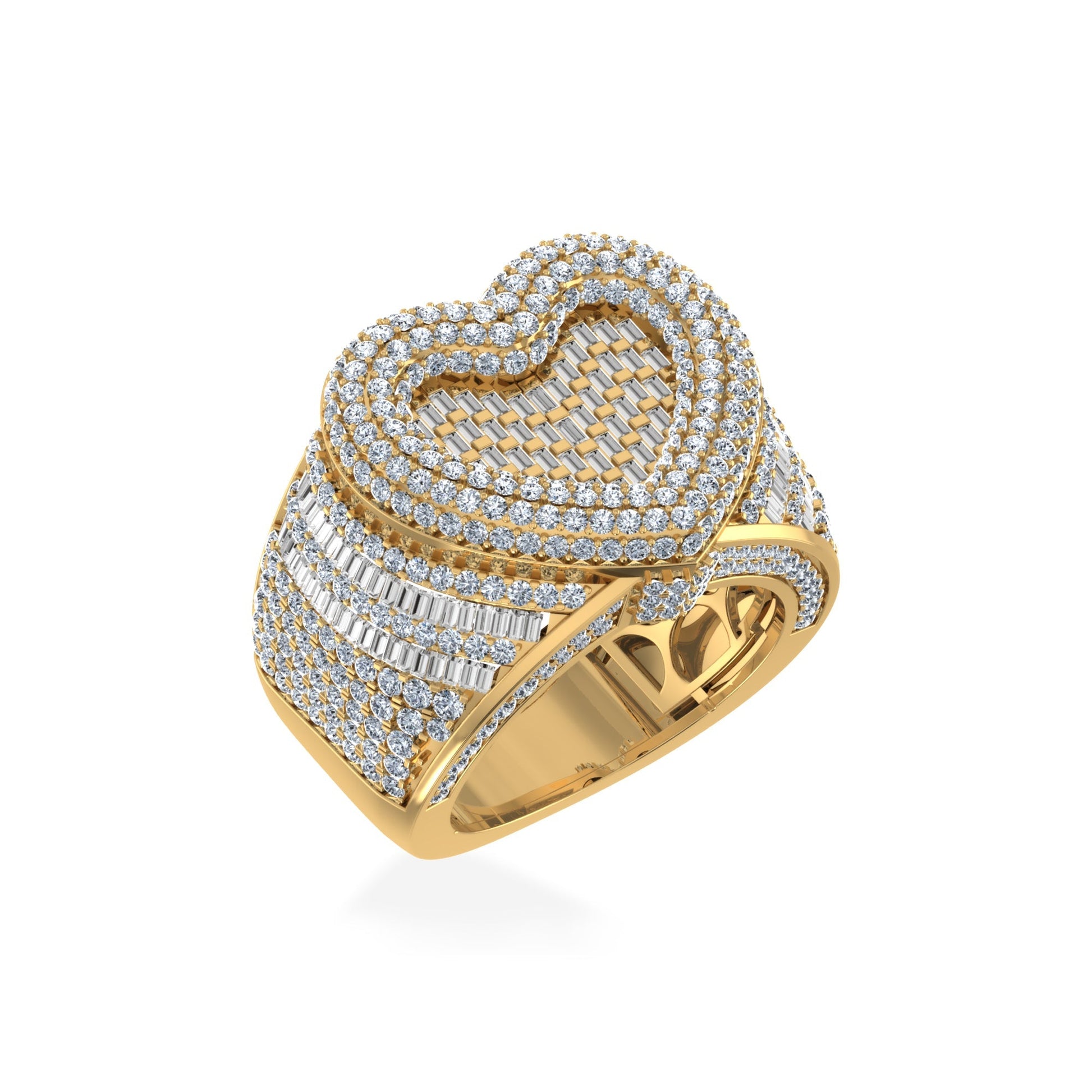 10K Yellow Gold Round Baguette Diamond Heart Shape Designer SZ 10 Mens Ring 4-1/2 Cttw