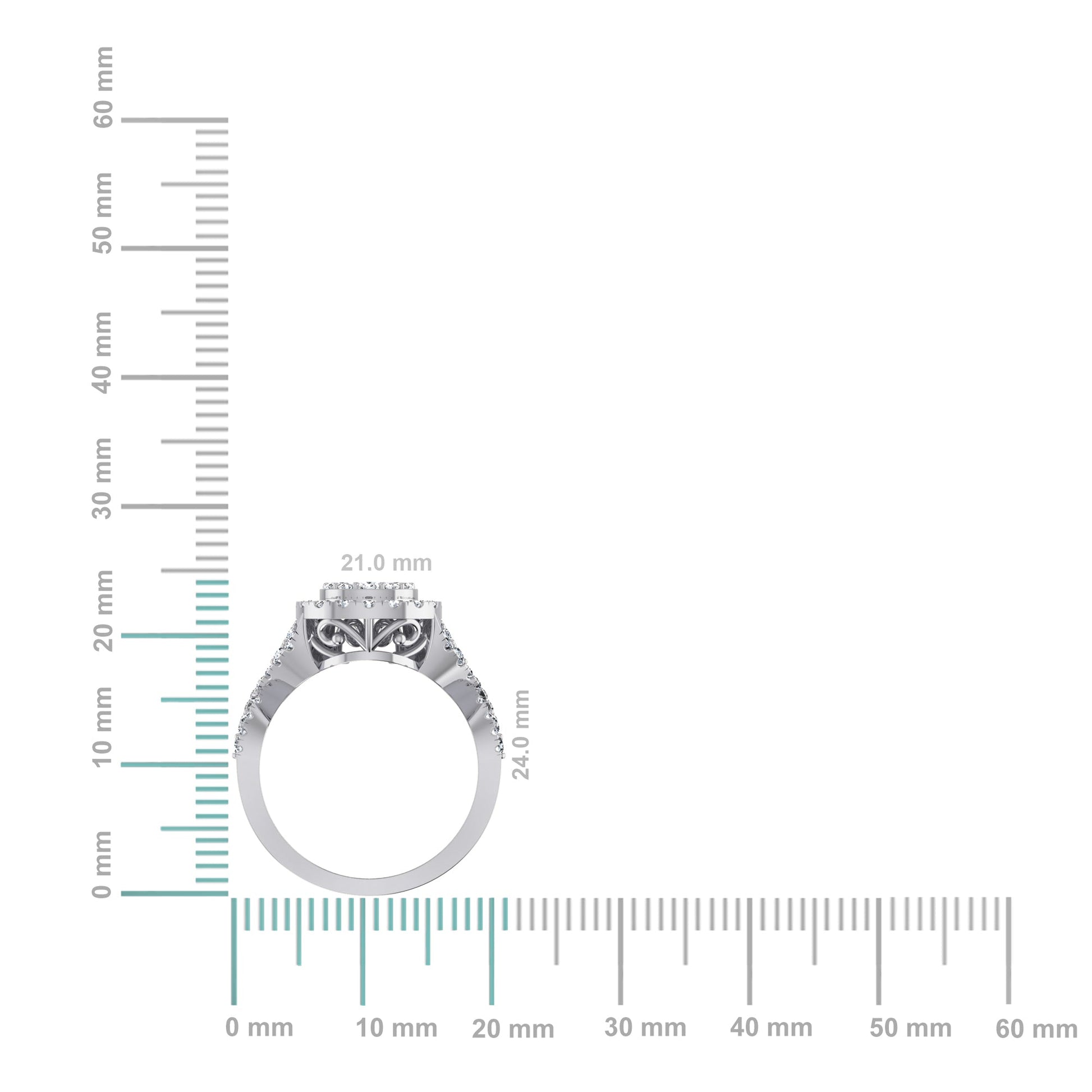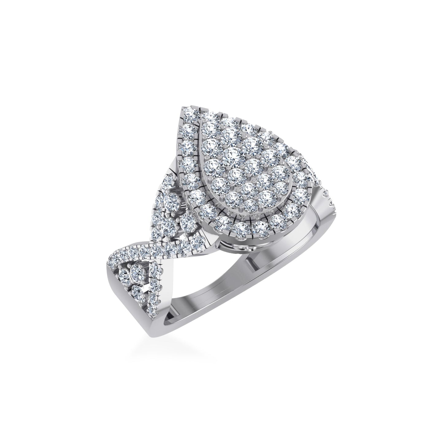 10K White Gold Round Diamond Pear Shape Halo Designer Womens Ring SZ 7 1-3/8 Cttw