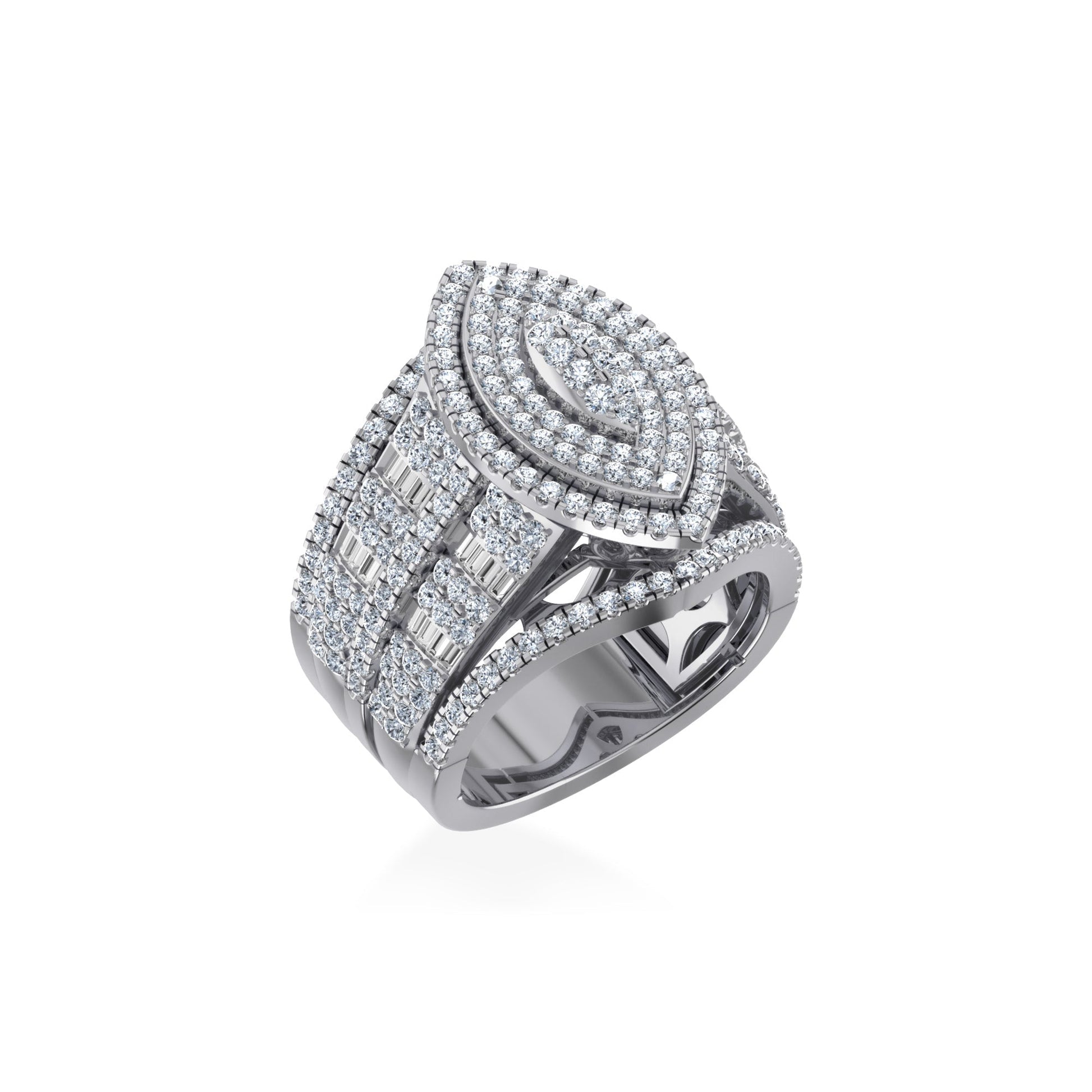 10K White Gold Round Baguette Diamond Marquise Shape Designer Womens Ring SZ 7 2 Cttw