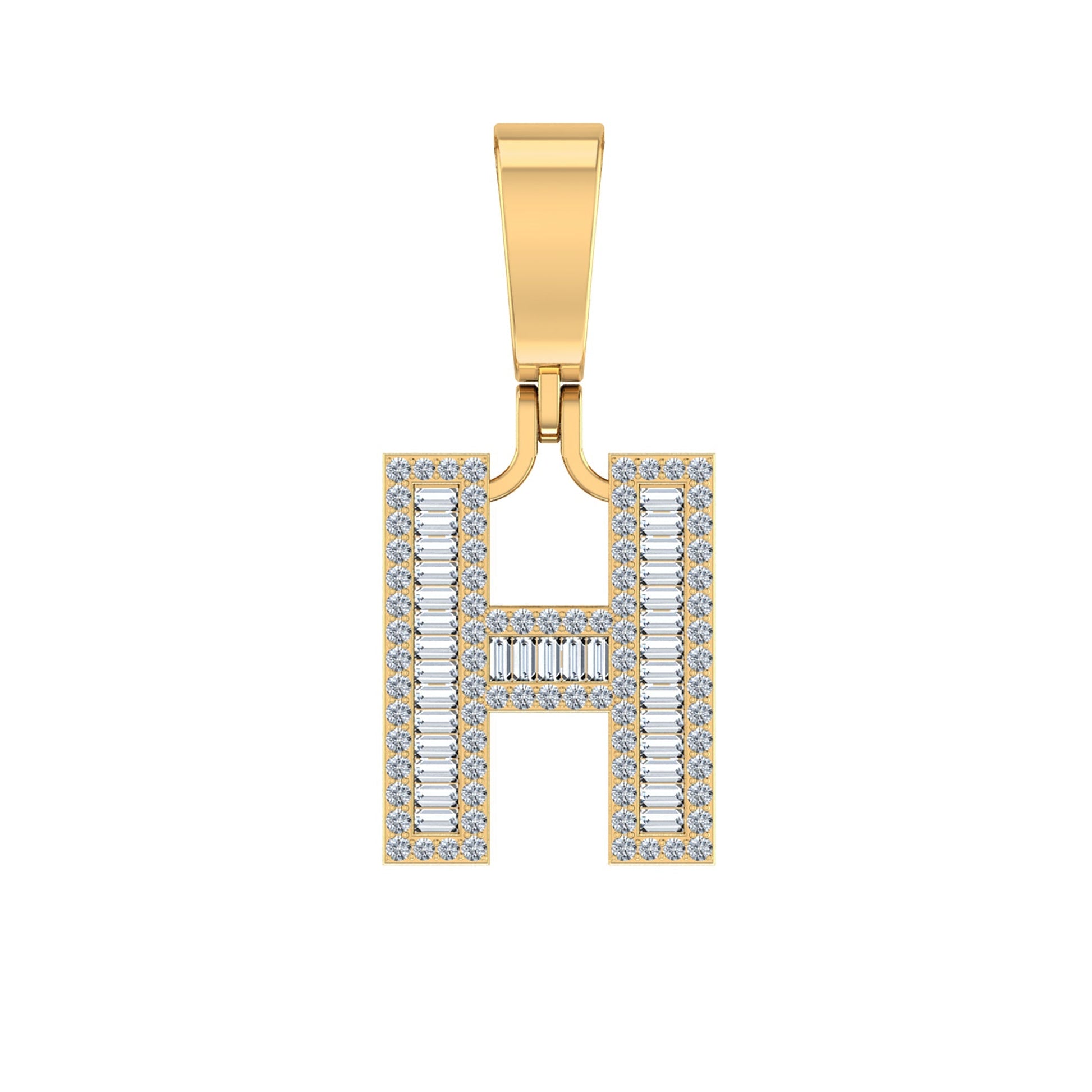 10K Yellow Gold Baguette Diamond Initial H Letter Pendant 1/2 Cttw