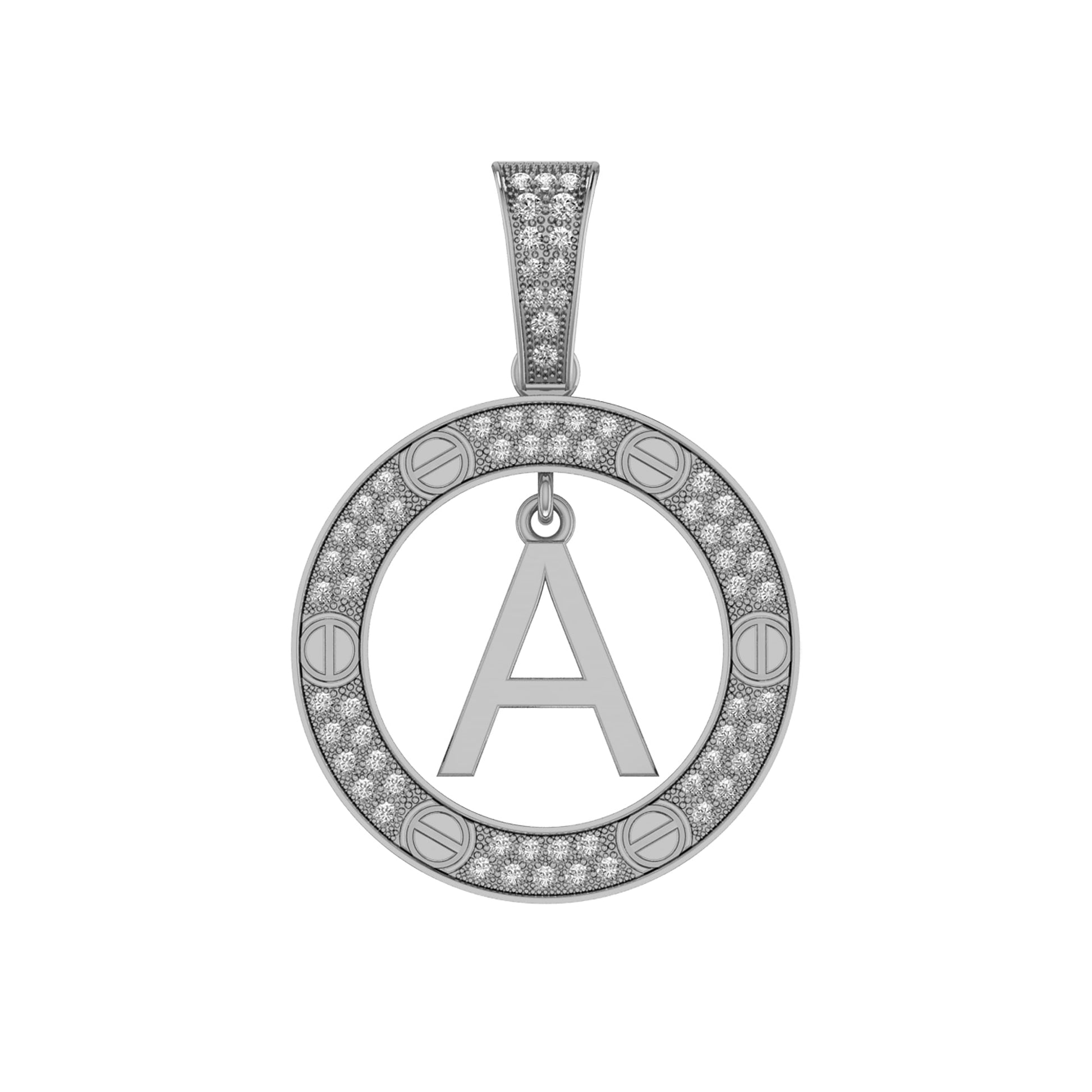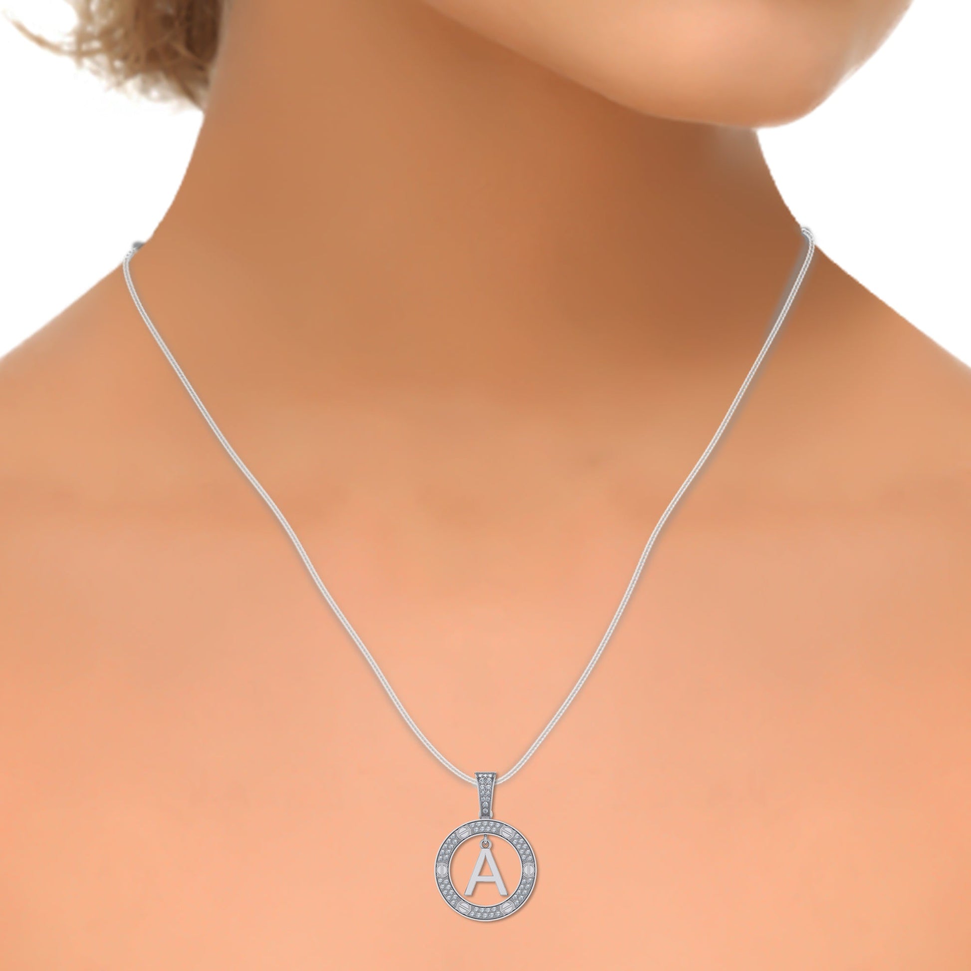 10K White Gold Round Diamond A Letter Initial Pendant 1/5 Cttw