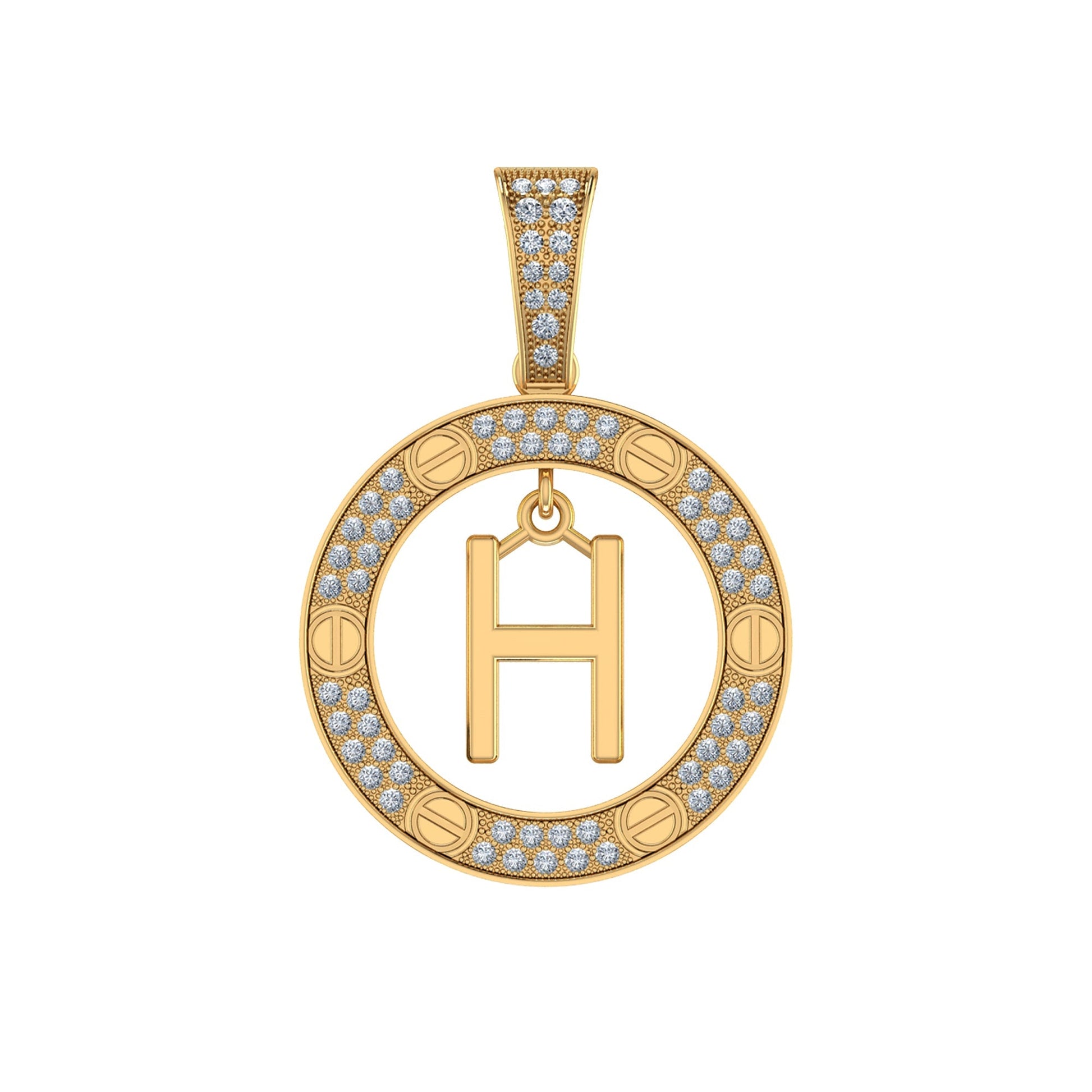 10K Yellow Gold Round Diamond H Letter Initial Pendant 1/5 Cttw