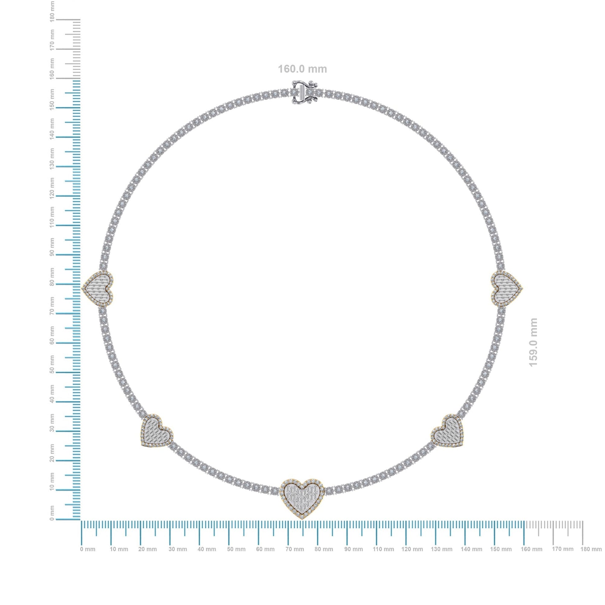 10K Yellow White Two Tone Round Baguette Diamond Heart Designer 18 Inch Necklace 2-3/8 Cttw