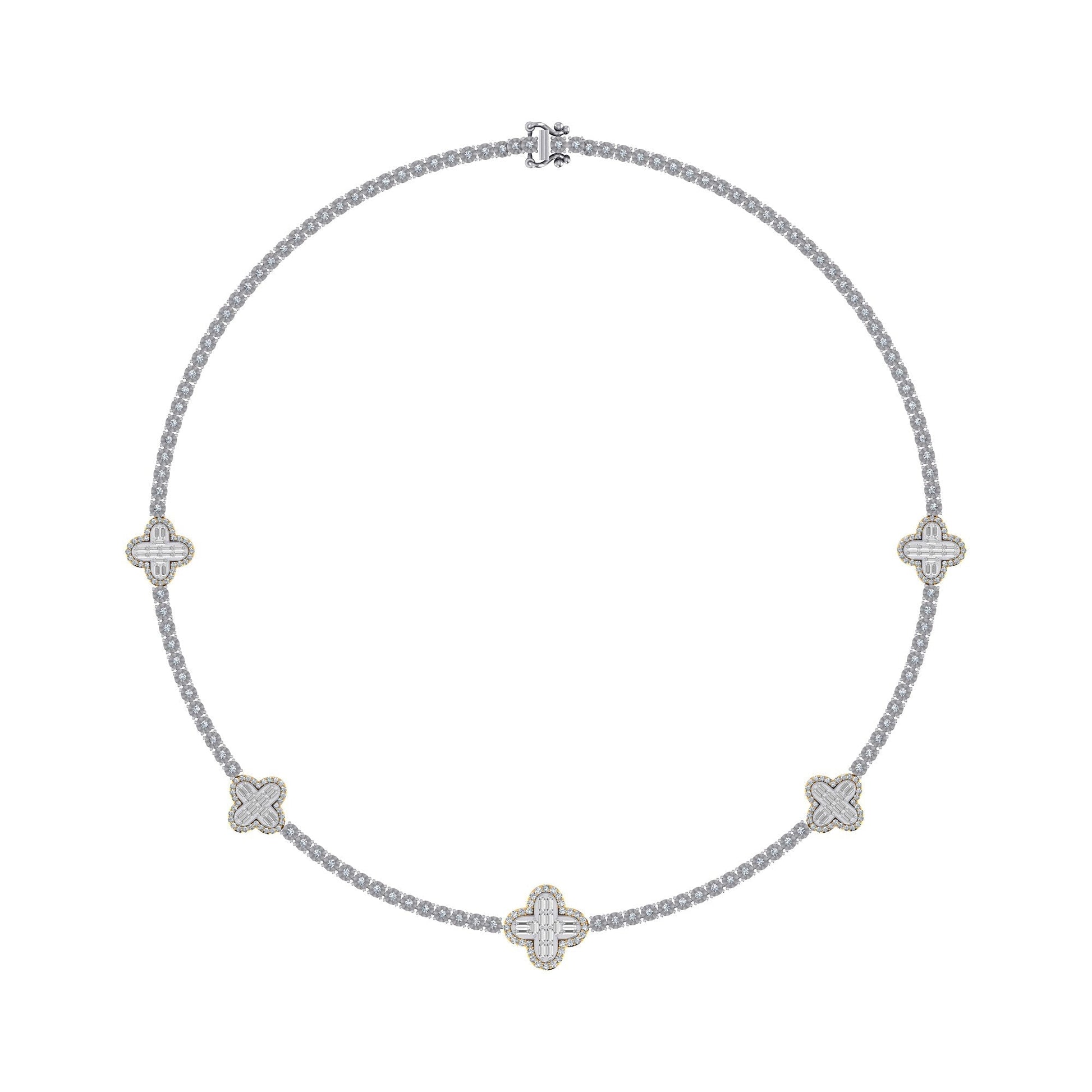 10K Yellow White Two Tone Round Baguette Diamond Designer 18 Inch Necklace 2-1/5 Cttw