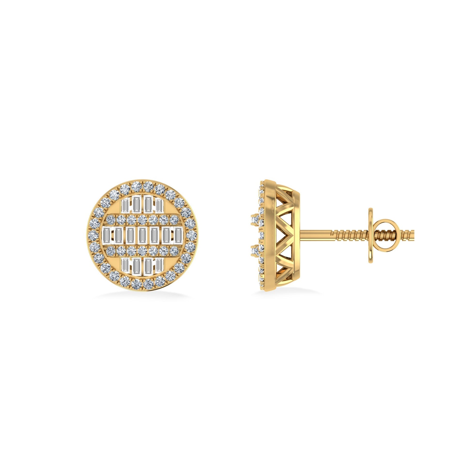 10K Yellow Gold Round Baguette Diamond Designer Mens Stud Earring 3/8 Cttw