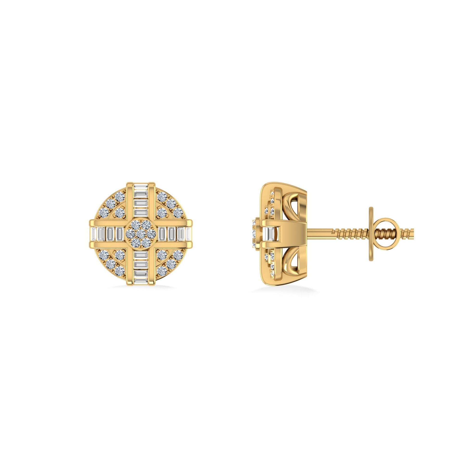 10K Yellow Gold Round Diamond Designer Mens Stud Earring 1/4 Cttw