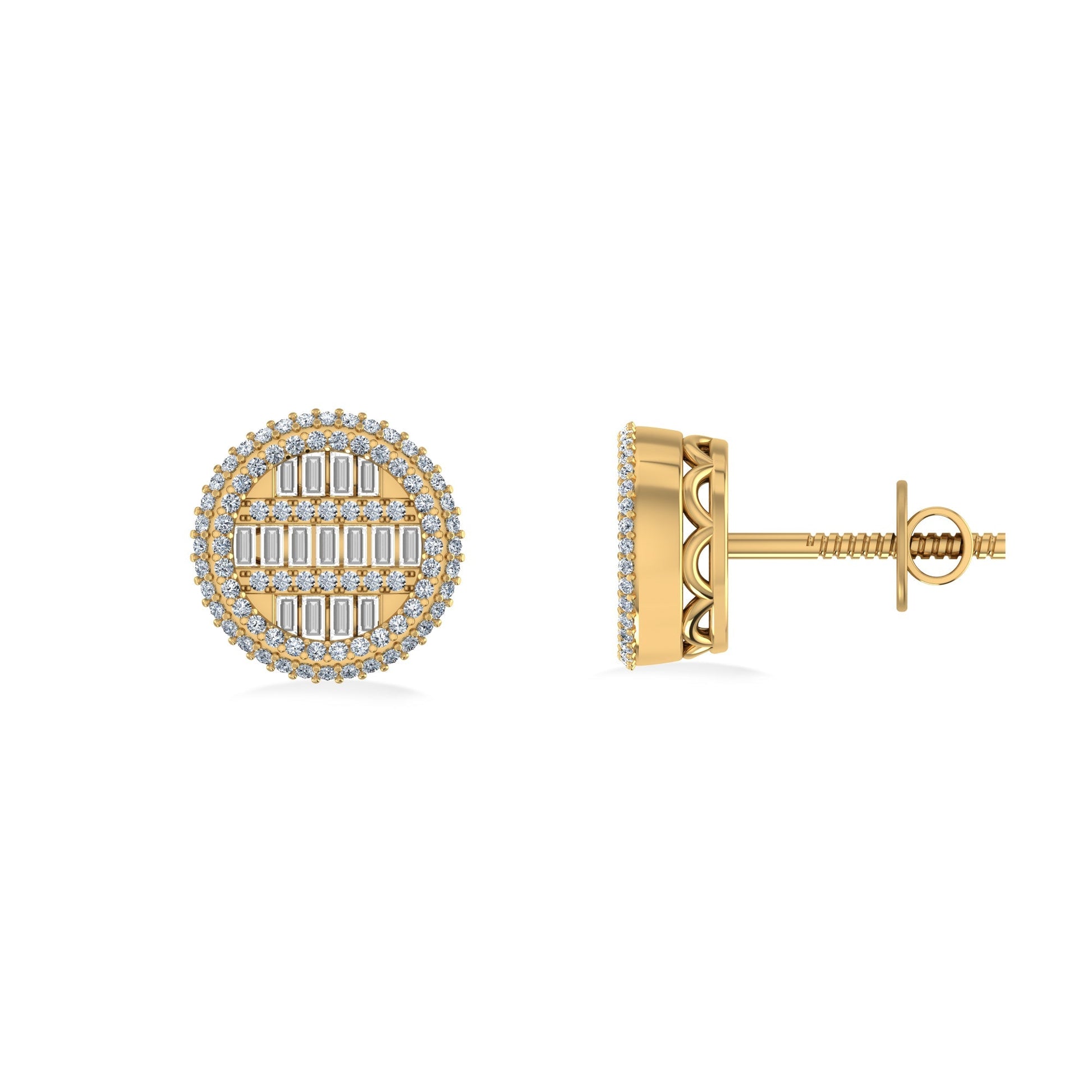 10K Yellow Gold Round Baguette Diamond Designer Mens Stud Earring 1/3 Cttw