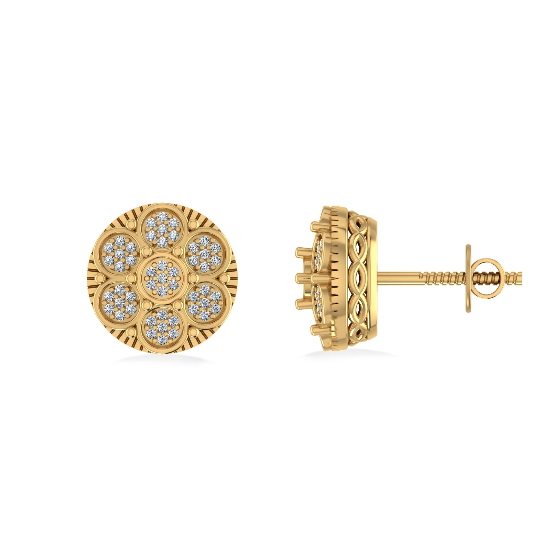10K Yellow Gold Round Diamond Flower Designer Mens Stud Earring 1/8 Cttw