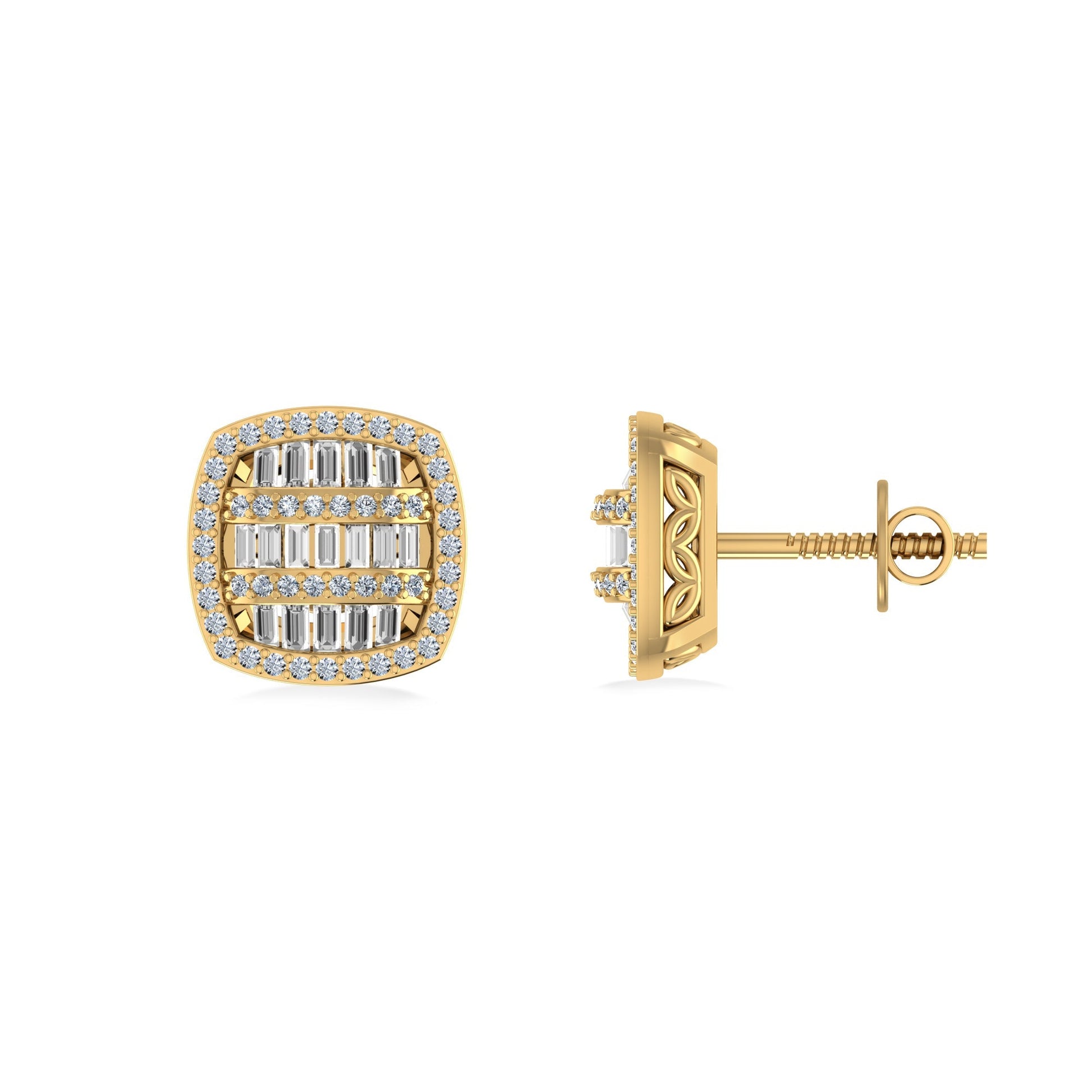 10K Yellow Gold Round Baguette Diamond Designer Halo Mens Stud Earring 1/2 Cttw