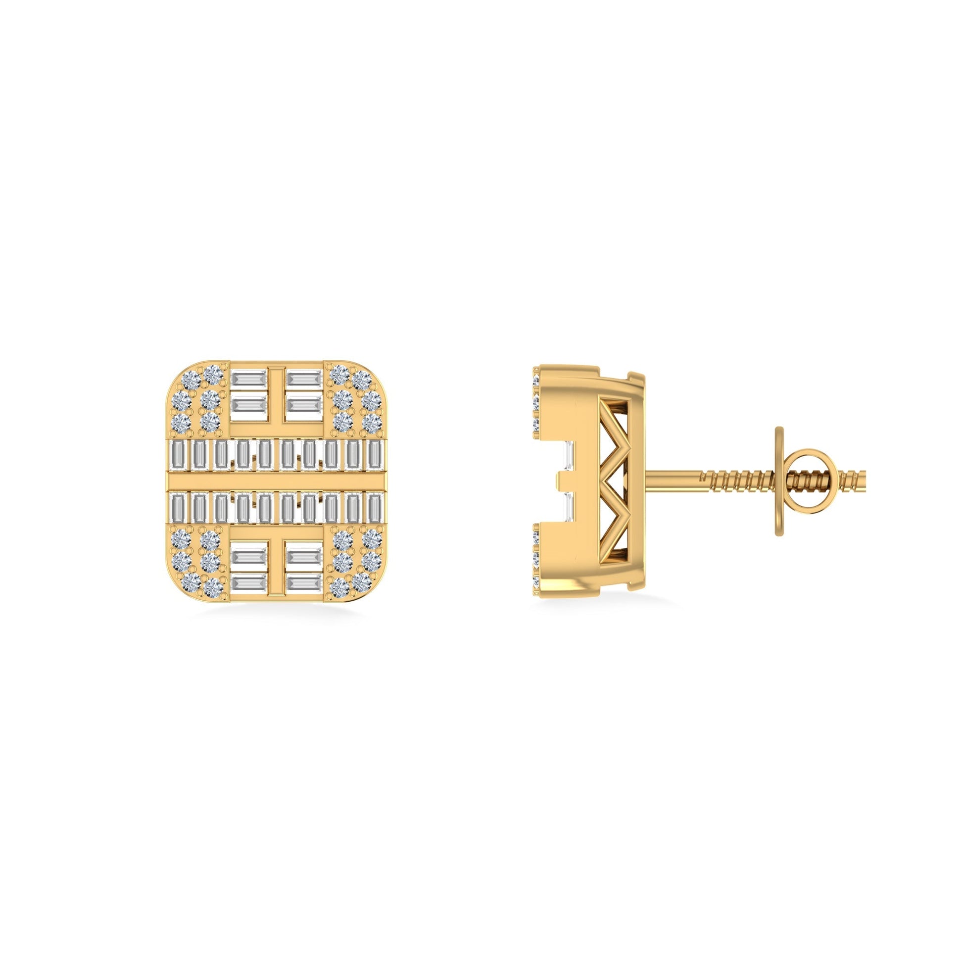 10K Yellow Gold Round Diamond Square Shape Designer Mens Stud Earring 1/3 Cttw