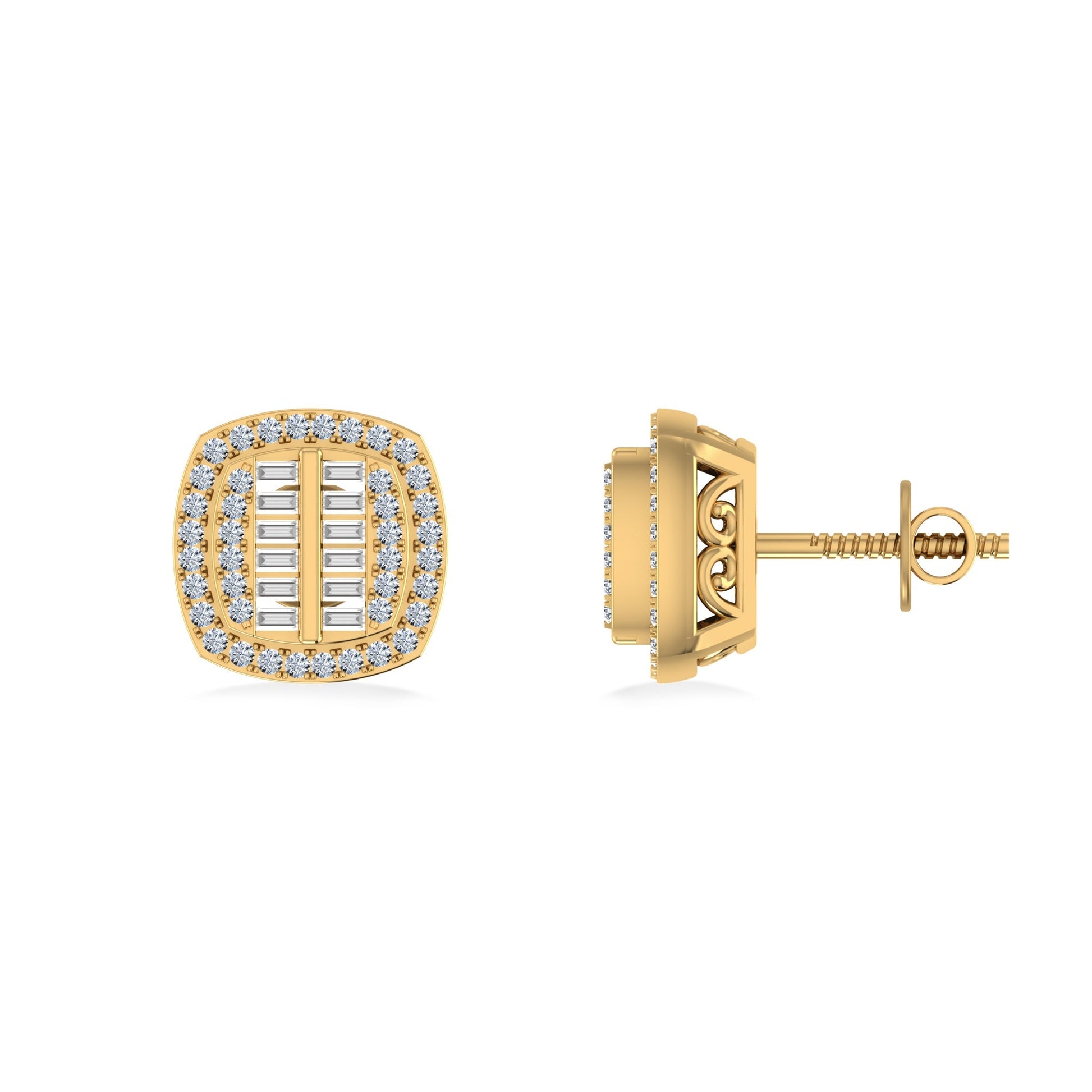 10K Yellow Gold Round Baguette Diamond Square Shape Designer Mens Stud Earring 1/3 Cttw