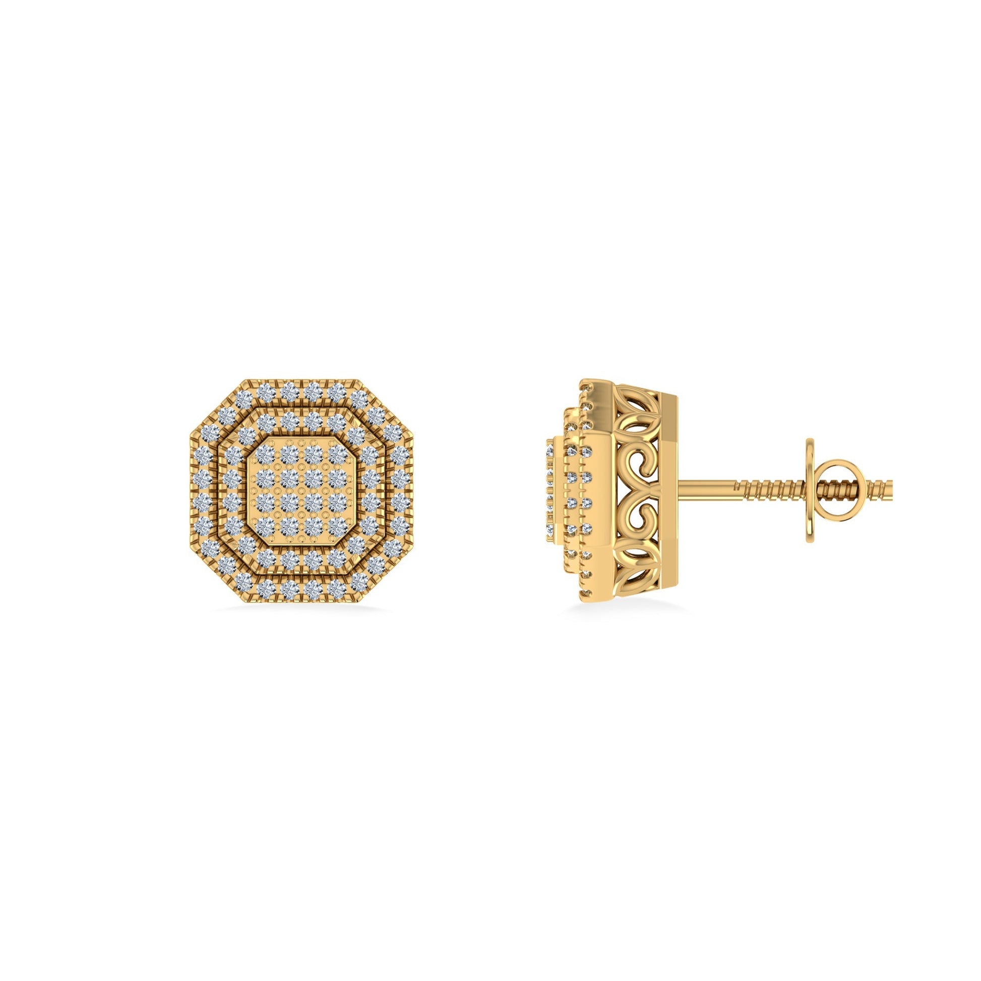 10K Yellow Gold Round Diamond Designer Halo Mens Stud Earring 1/5 Cttw