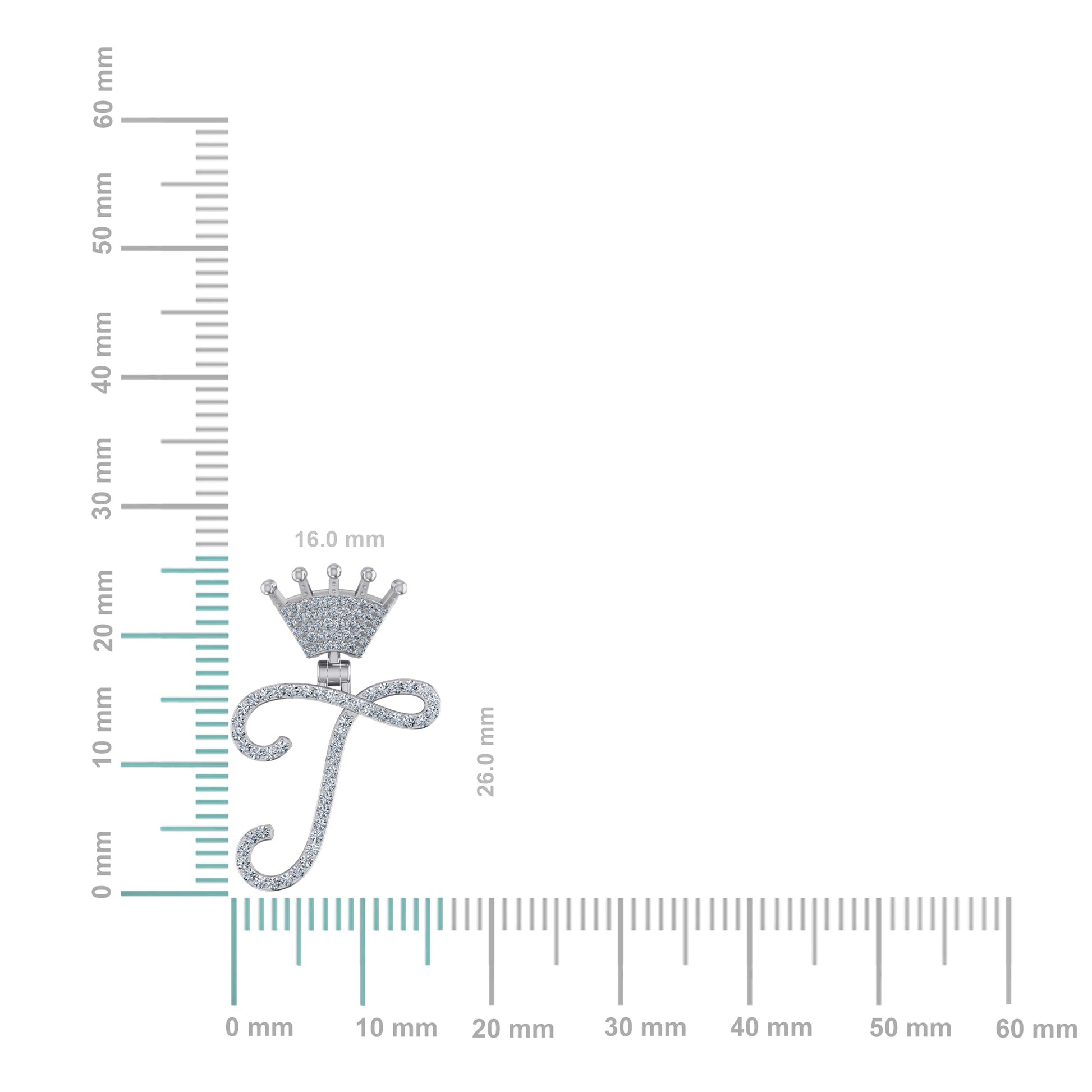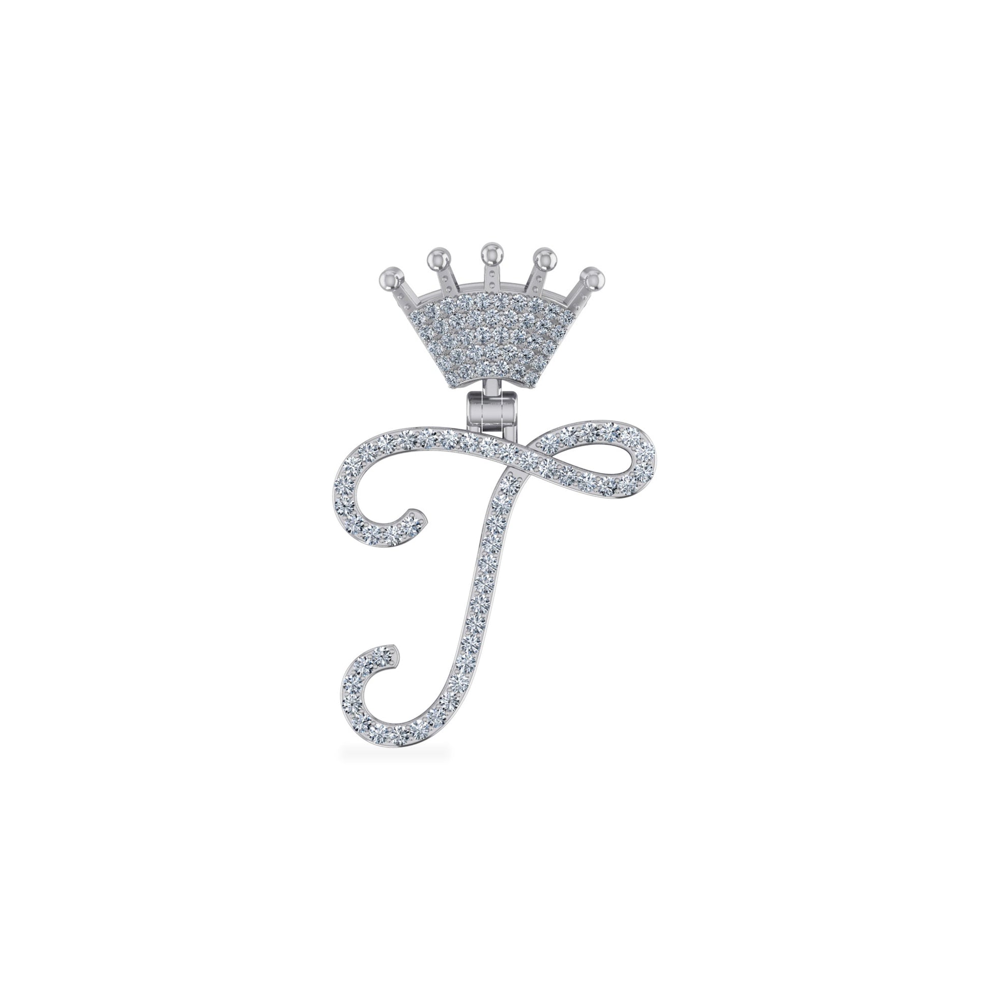 10K White Gold Round Diamond Crown T Letter Initial Pendant 1/5 Cttw