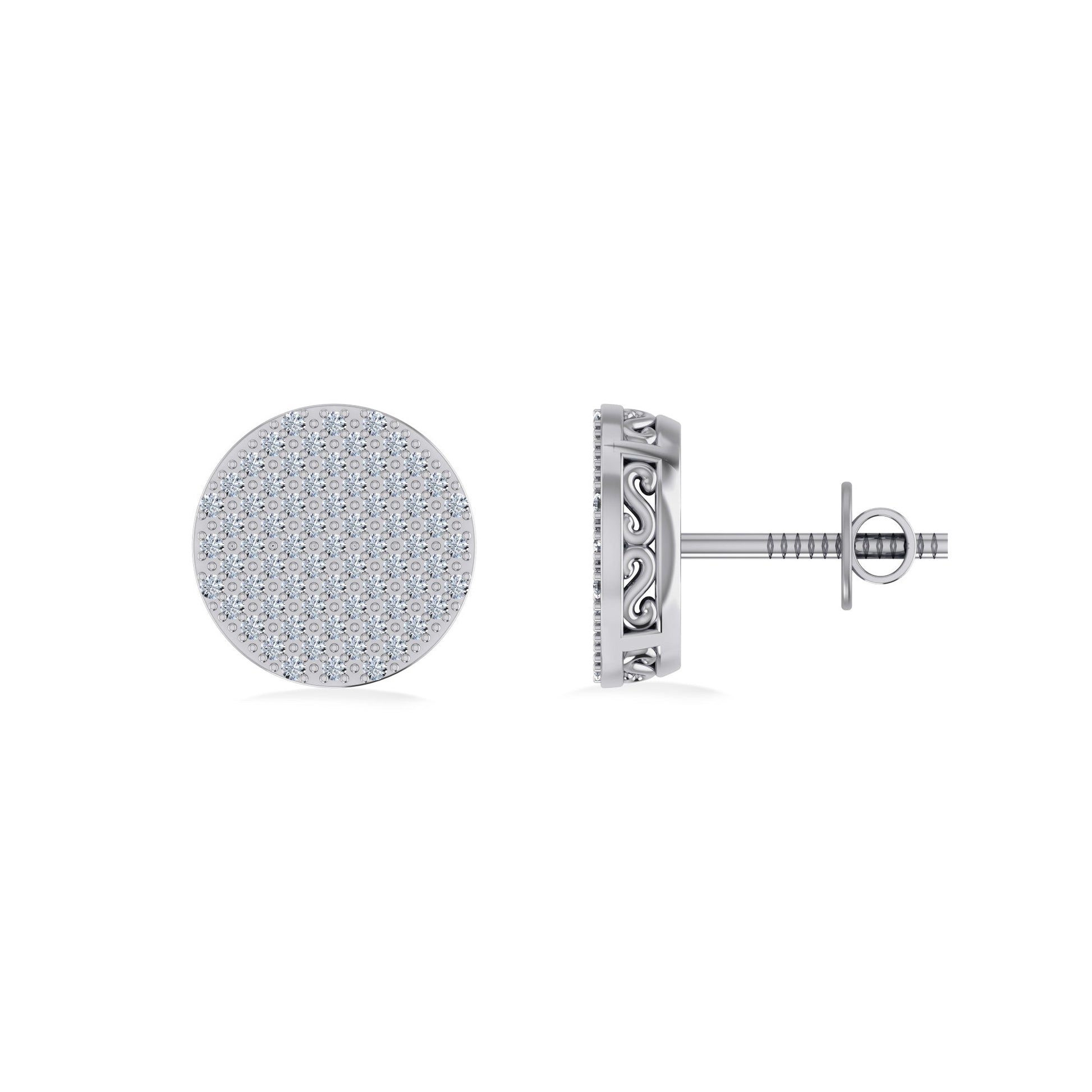 10K White Gold Round Diamond Designer Mens Stud Earring 1/3 Cttw