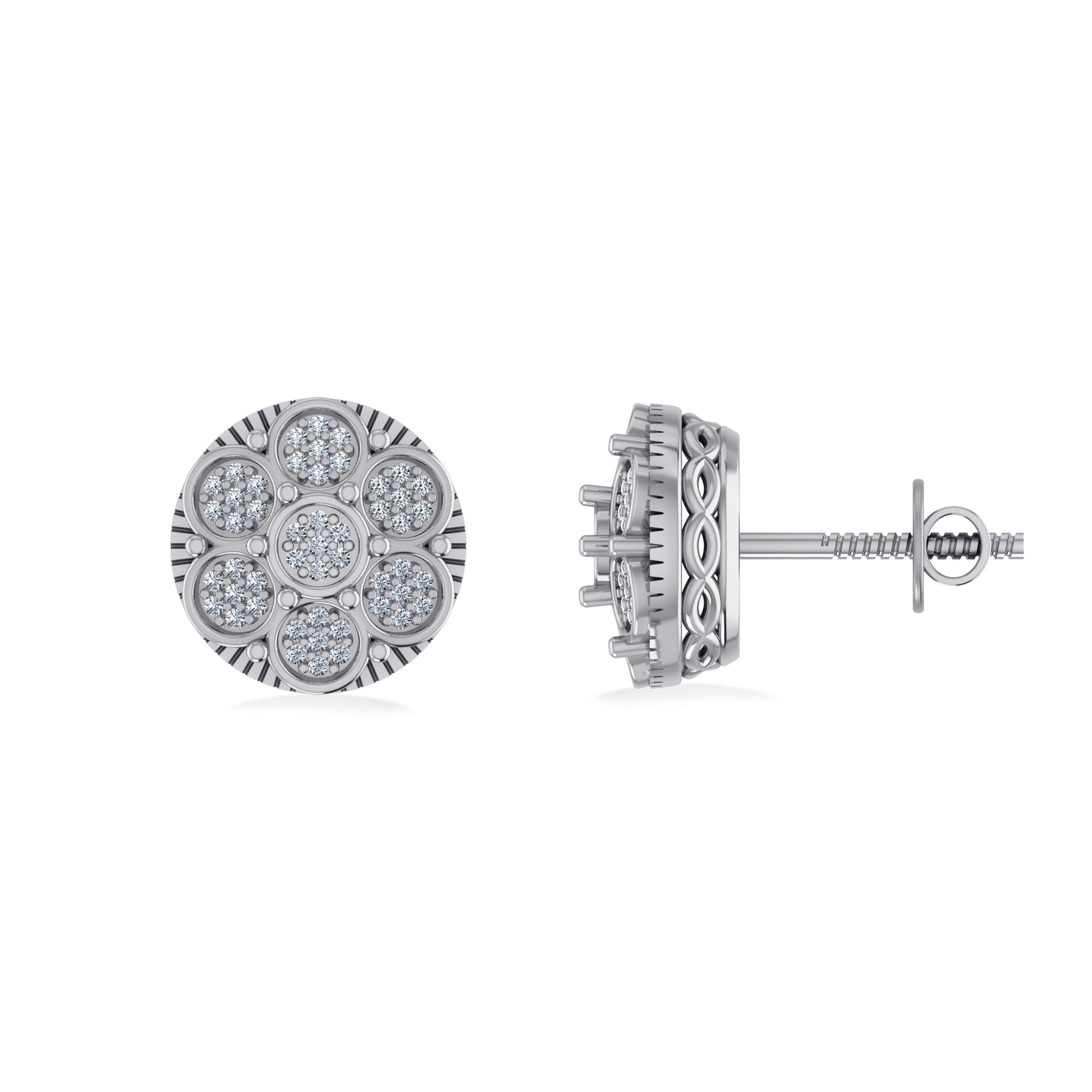 10K White Gold Round Diamond Flower Designer Mens Stud Earring 1/8 Cttw