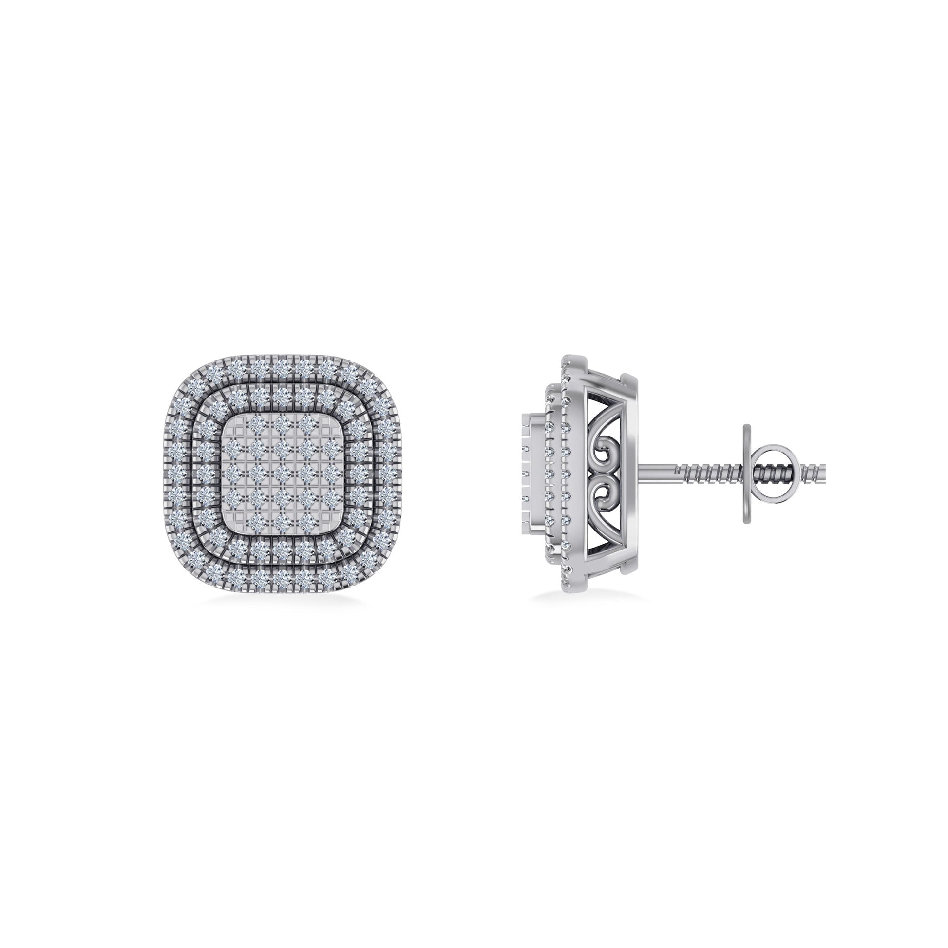 10K White Gold Round Diamond Square Shape Designer Mens Halo Stud Earring 1/3 Cttw