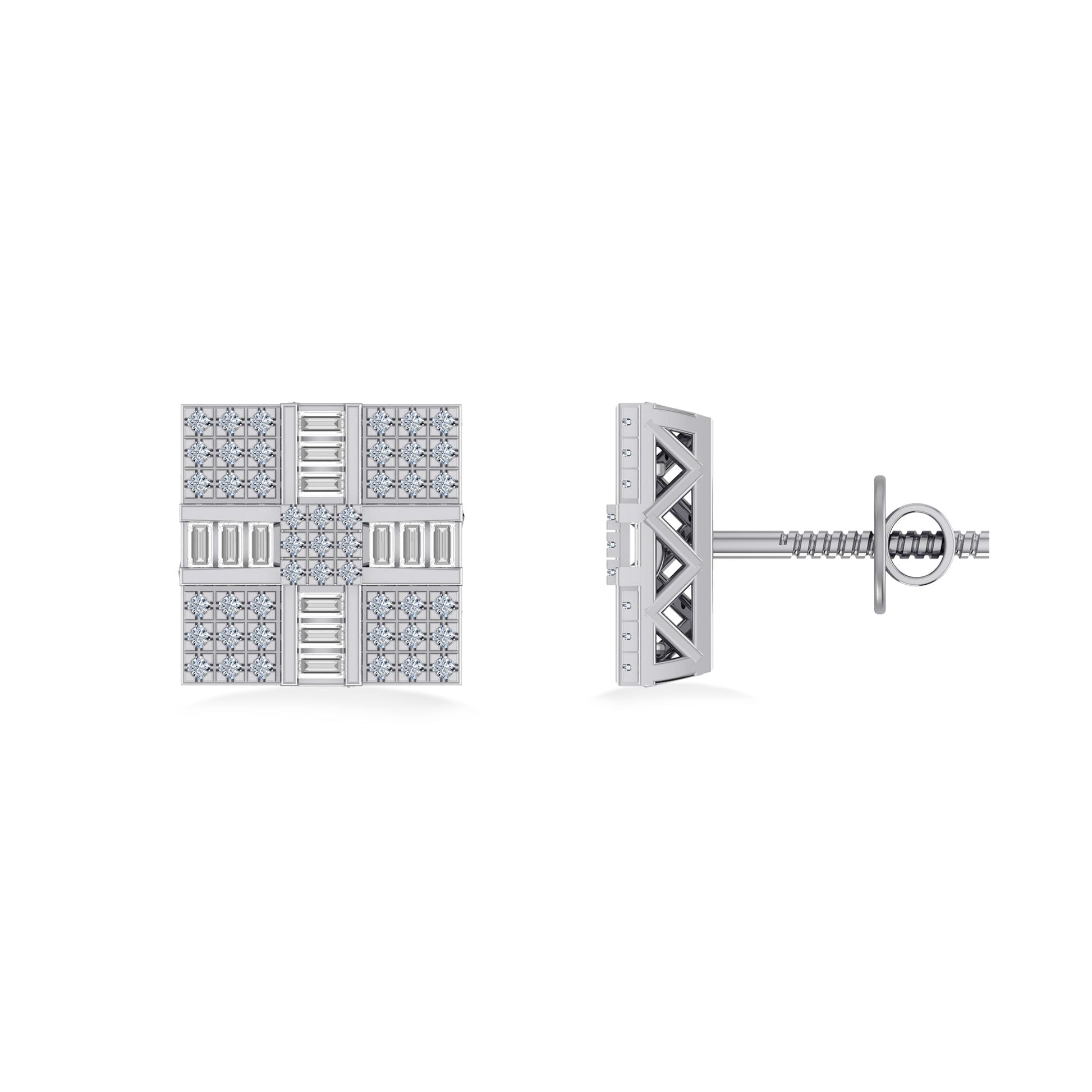 10K White Gold Round Baguette Diamond Square Shape Designer Mens Stud Earring 1/3 Cttw
