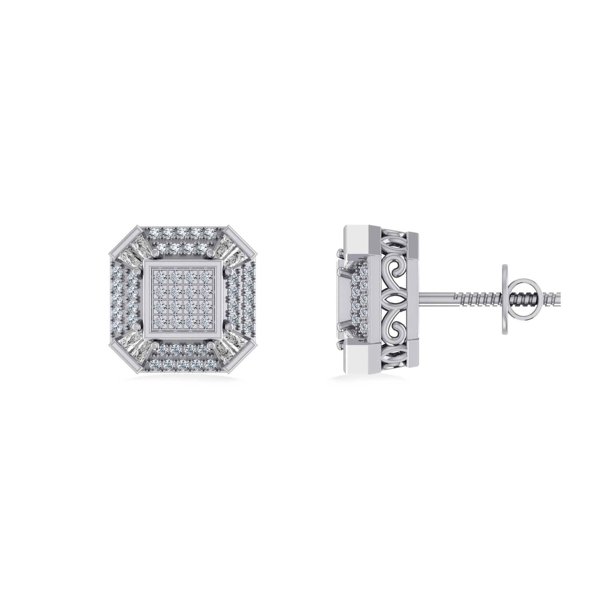 10K White Gold Round Baguette Diamond Designer Mens Stud Earring 1/4 Cttw