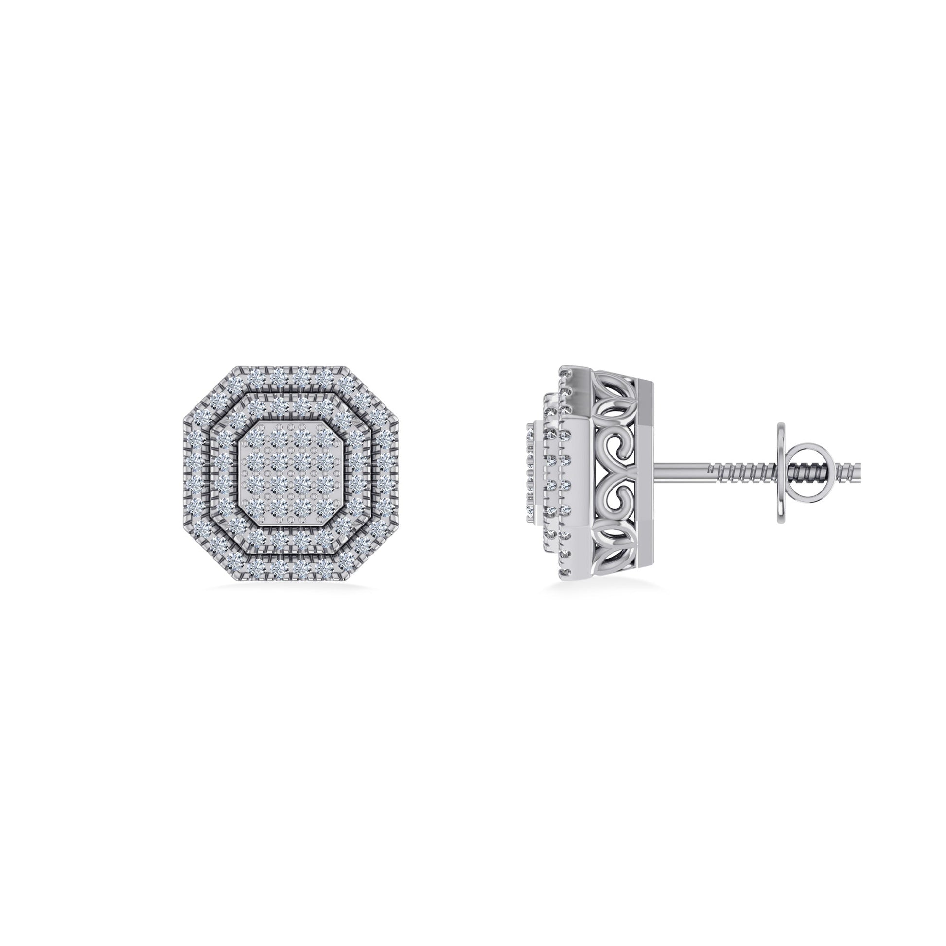 10K White Gold Round Diamond Designer Halo Mens Stud Earring 1/5 Cttw