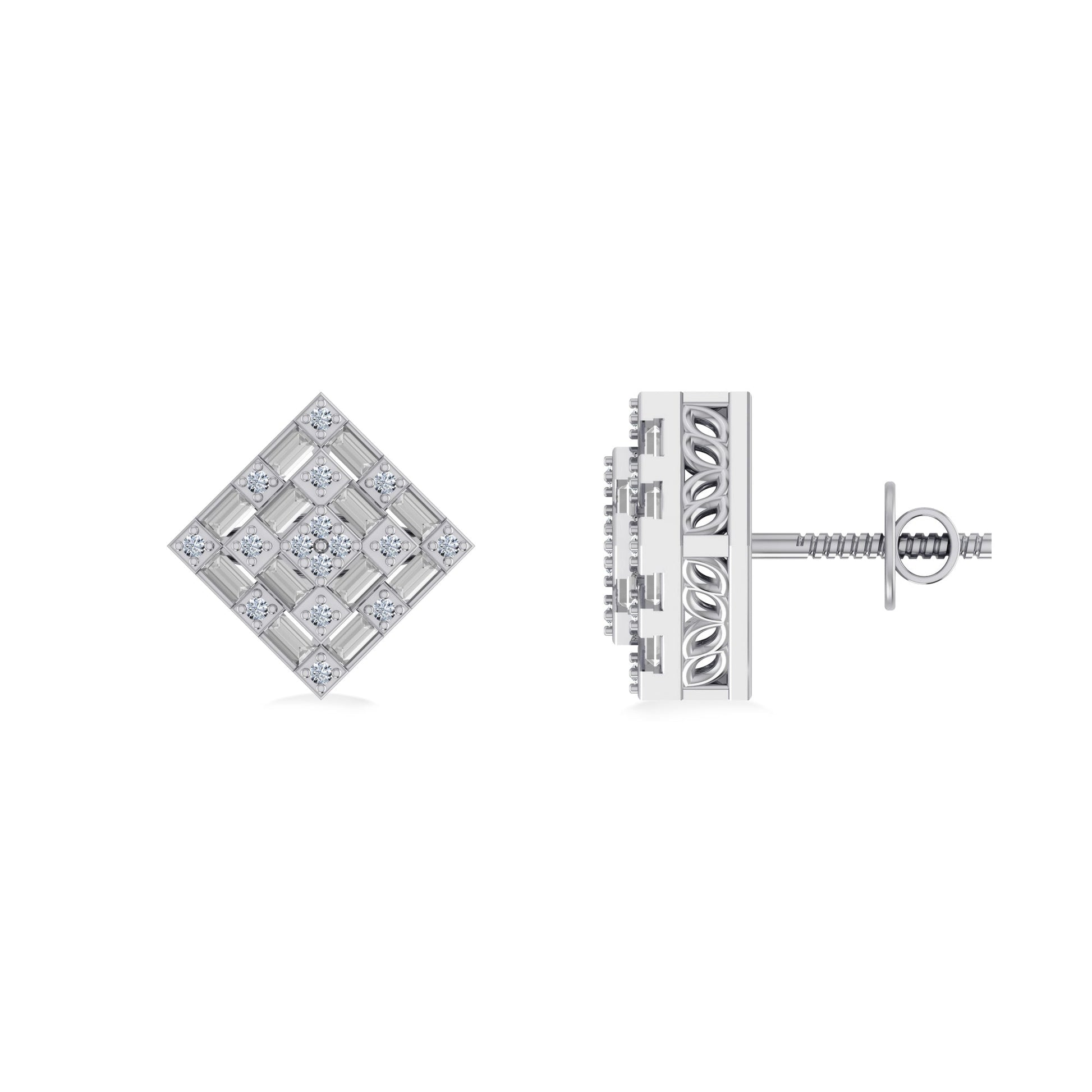 10K White Gold Round Baguette Diamond Square Shape Designer Mens Stud Earring 1/3 Cttw