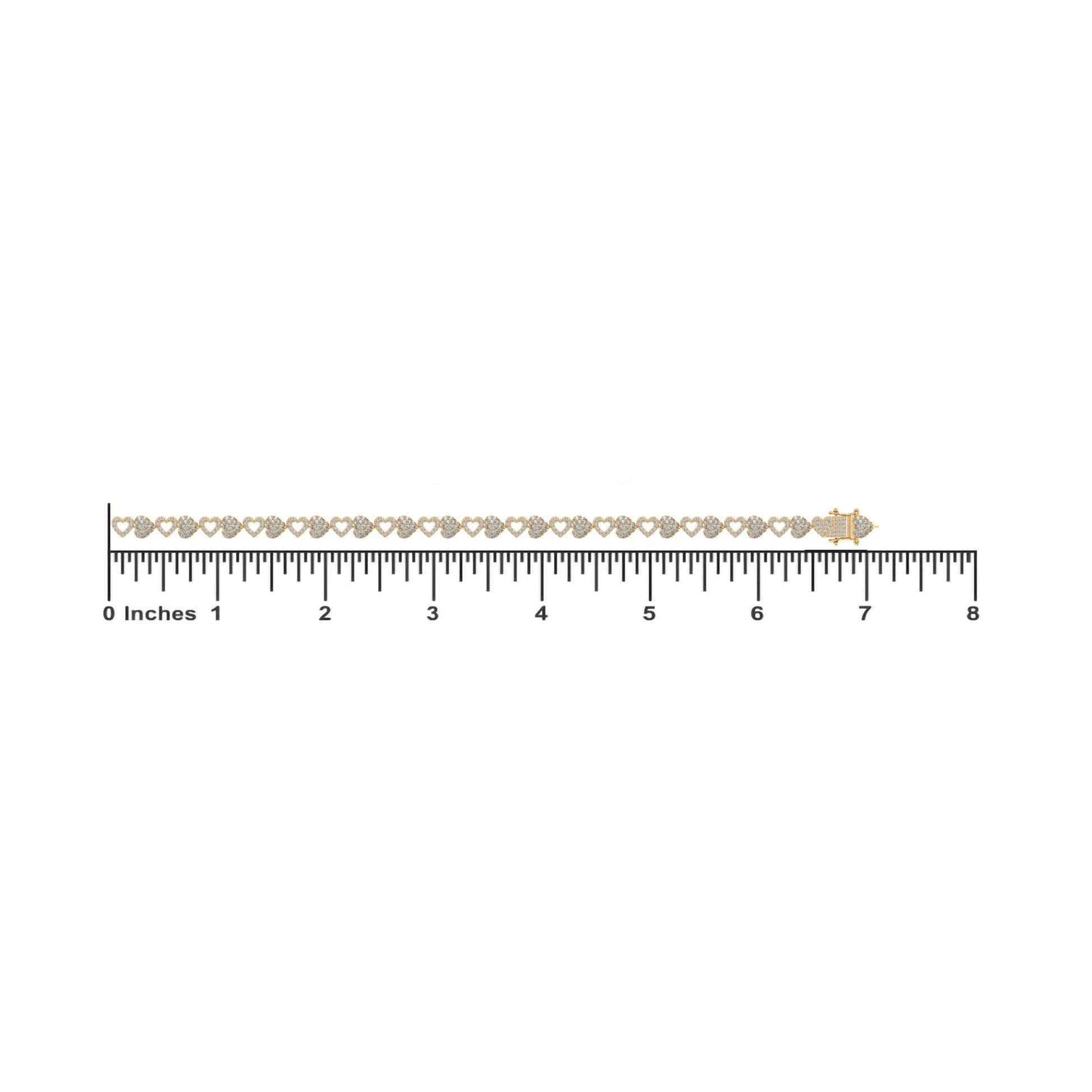 10K Yellow Gold Round Diamond Heart Designer 7 Inch Bracelet 2-1/6 Cttw