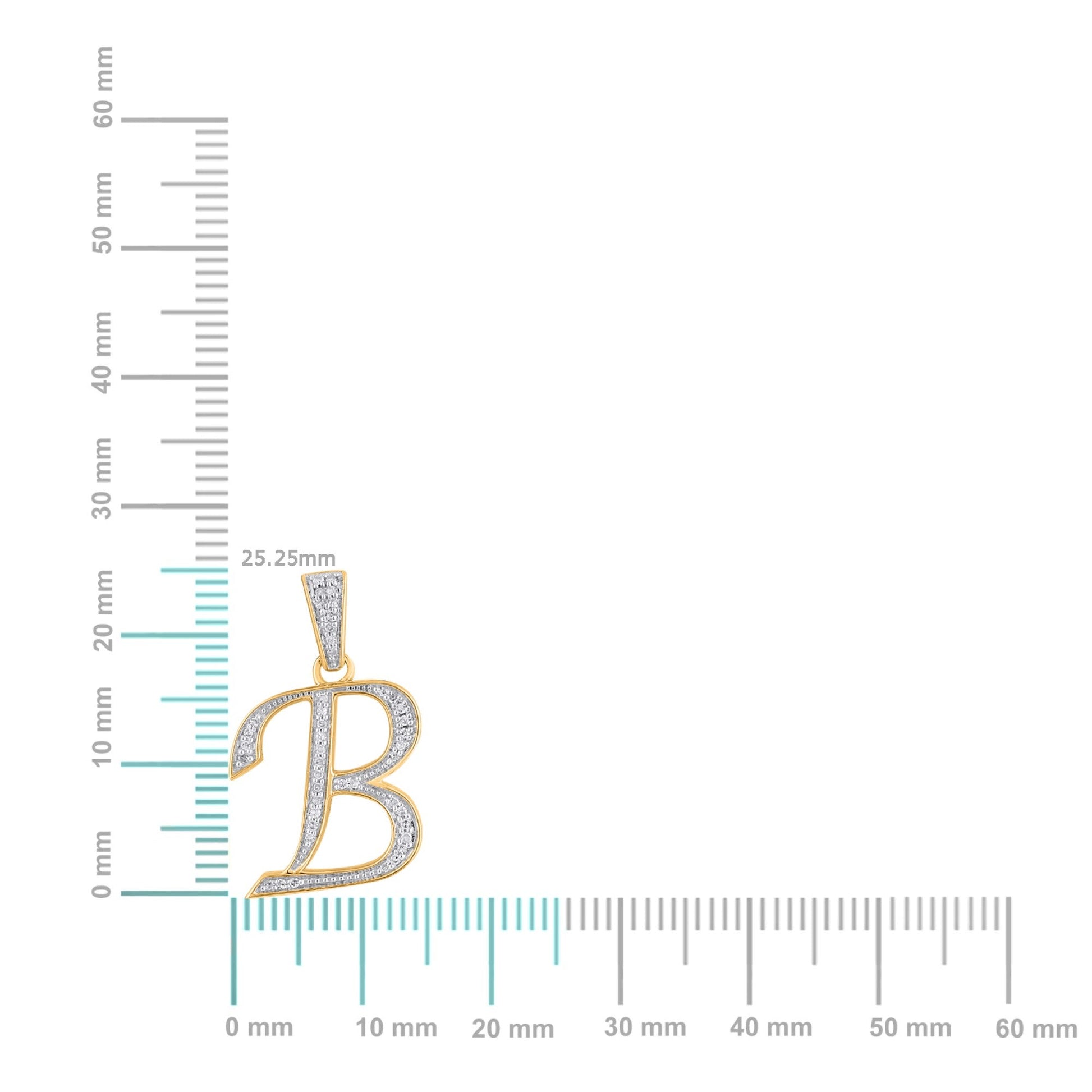 10K Yellow Gold Round Diamond B Letter Initial Pendant 1/10 Cttw