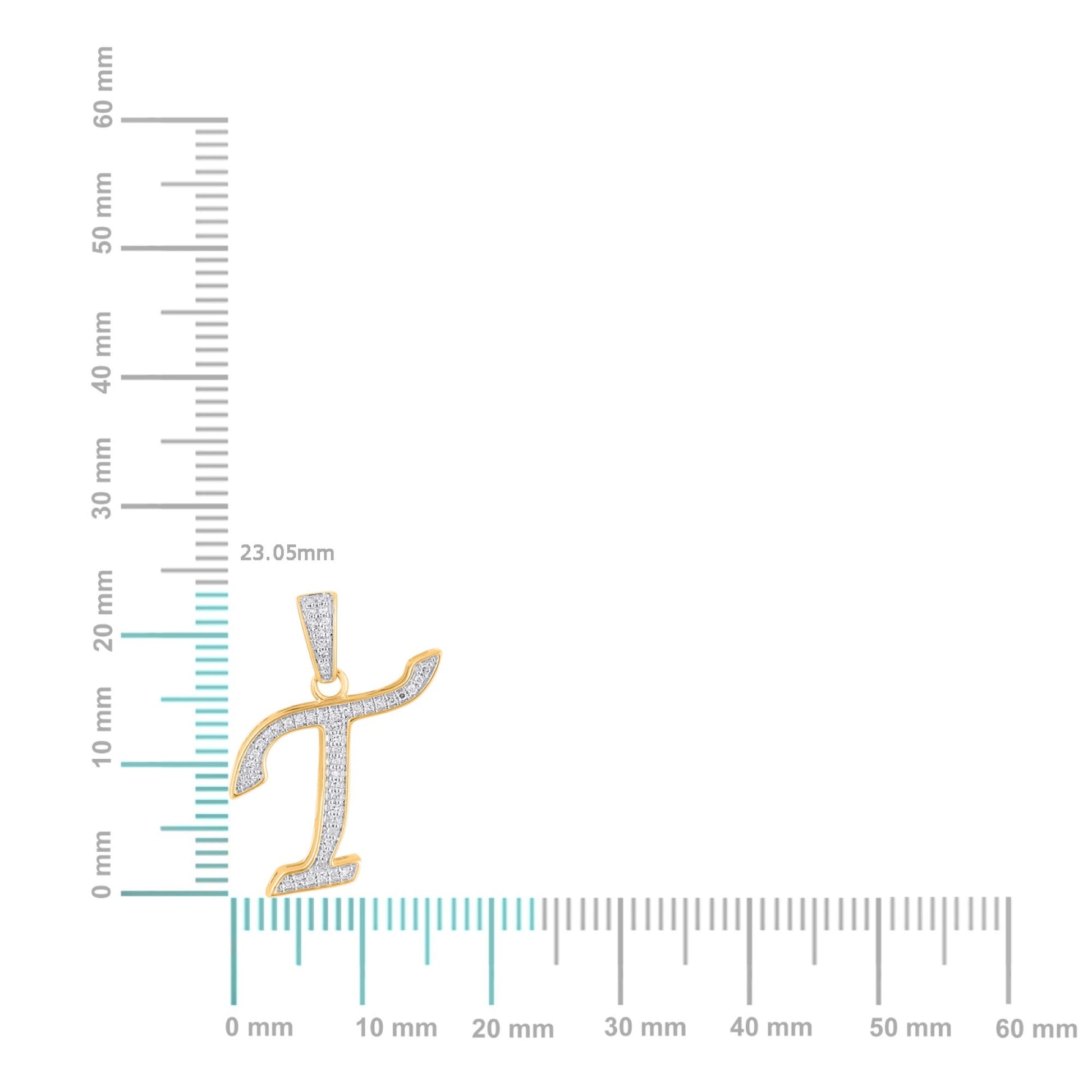 10K Yellow Gold Round Diamond T Letter Initial Pendant 1/10 Cttw