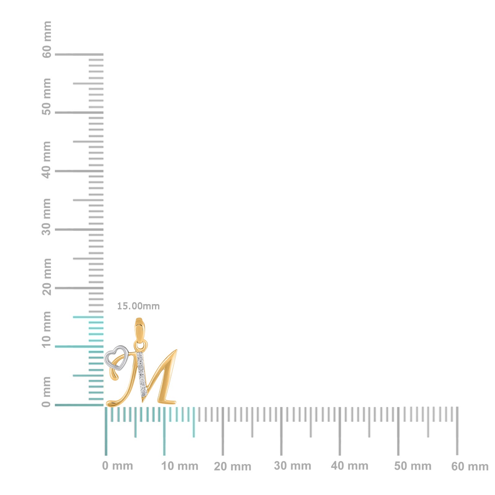 10K Yellow Gold Round Diamond M Letter Initial With Heart Pendant 1/10 Cttw