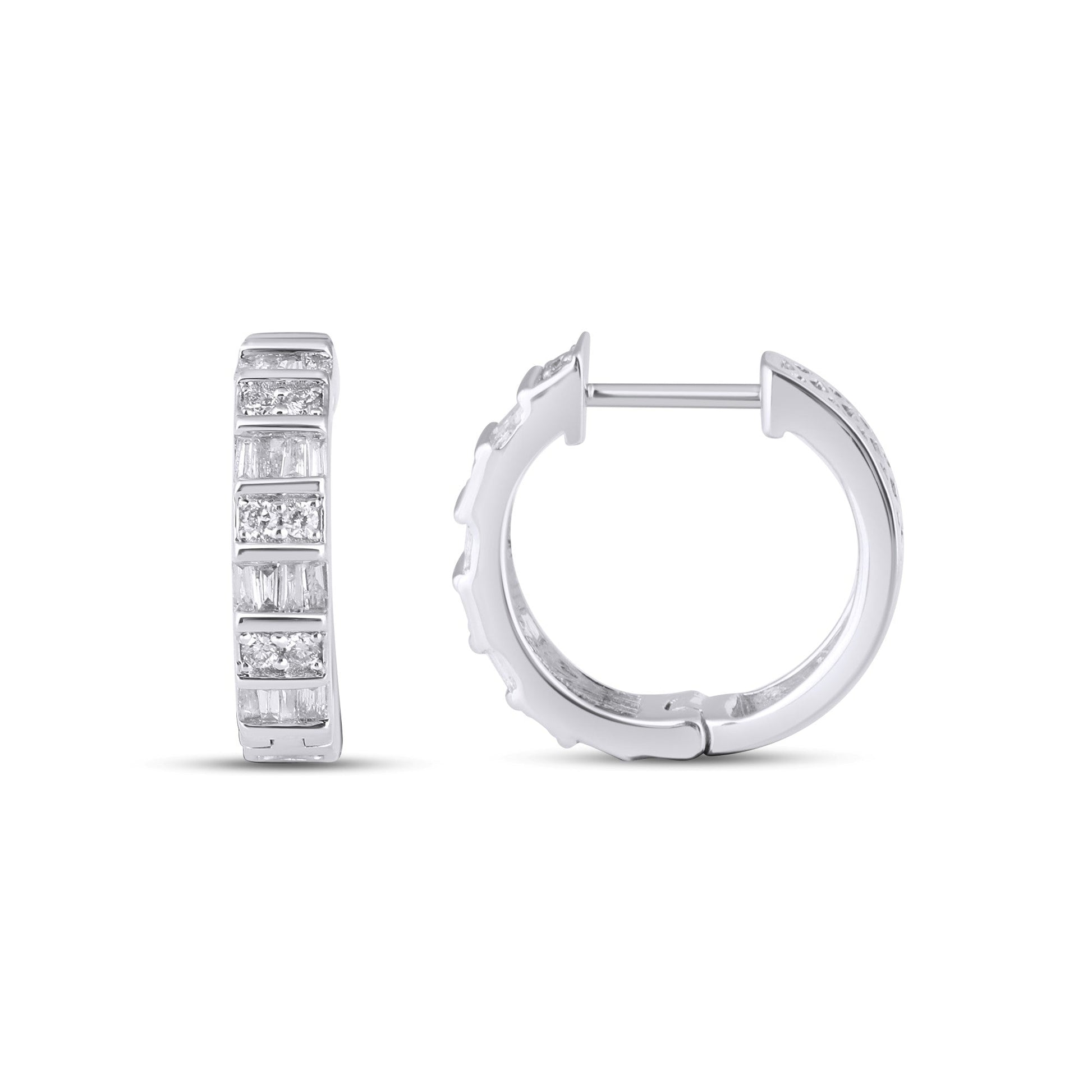 10K White Gold Round Taper Diamond Designer Hoop Earring 1/3 Cttw