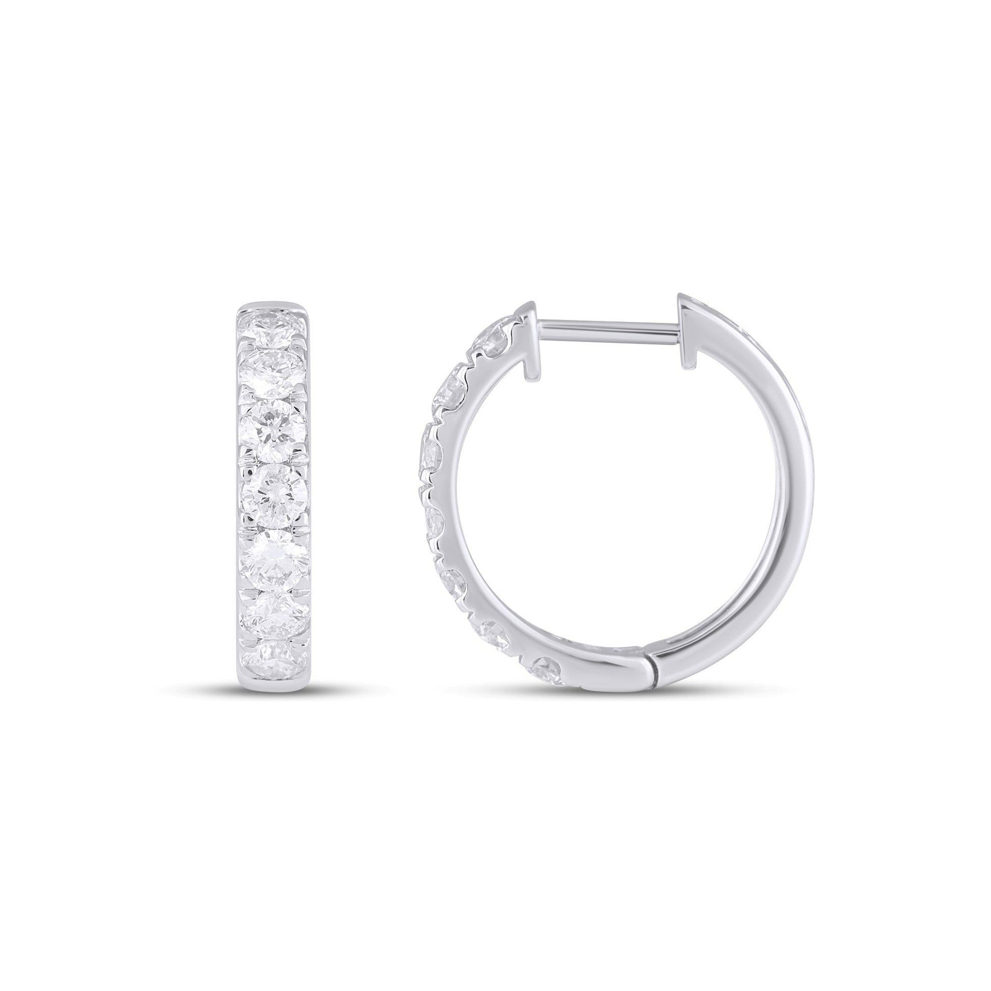 10K White Gold Round Diamond Designer Hoop Earring 1 Cttw
