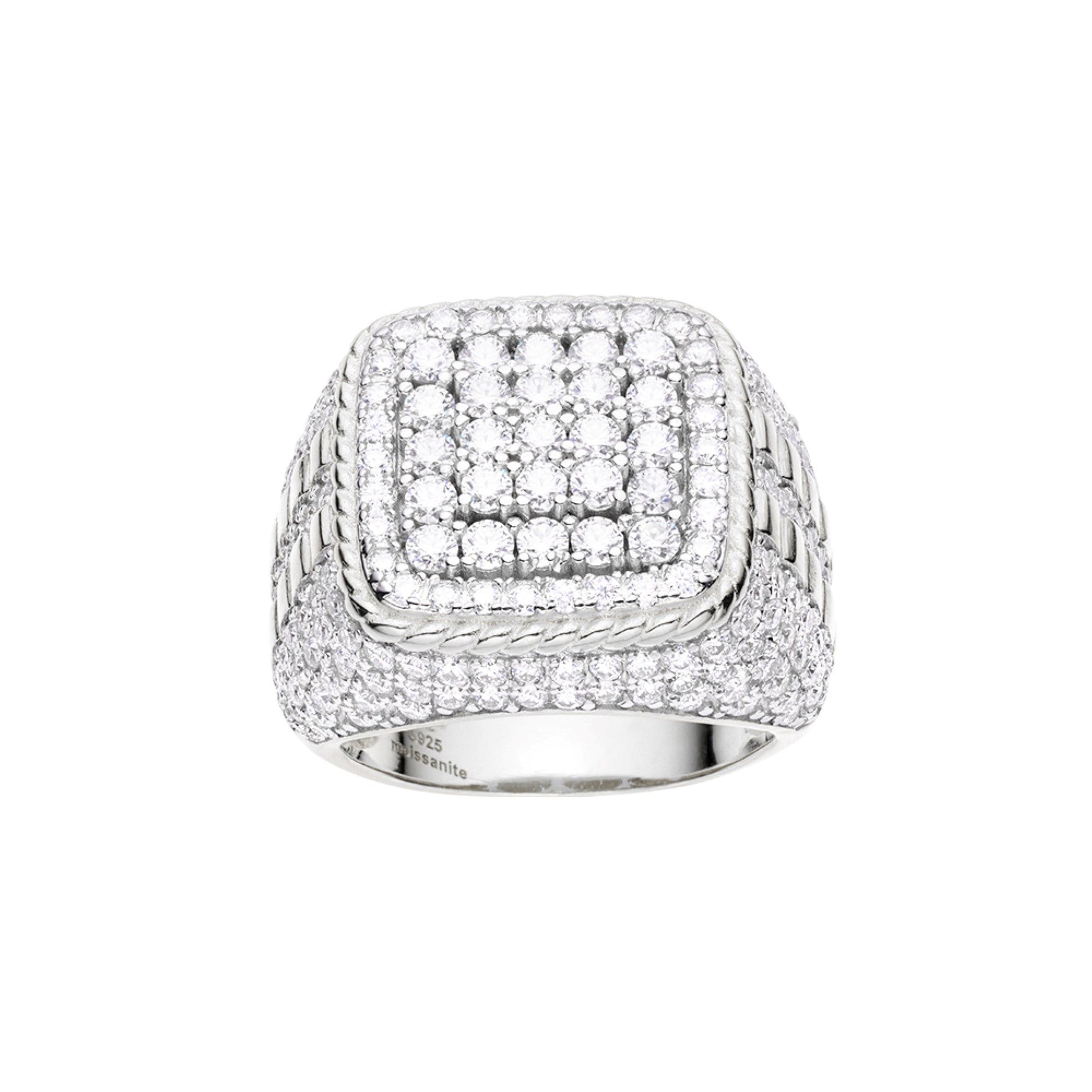 S.Silver Round Moissanite Designer Mens Ring RP 3-7/8 Cttw