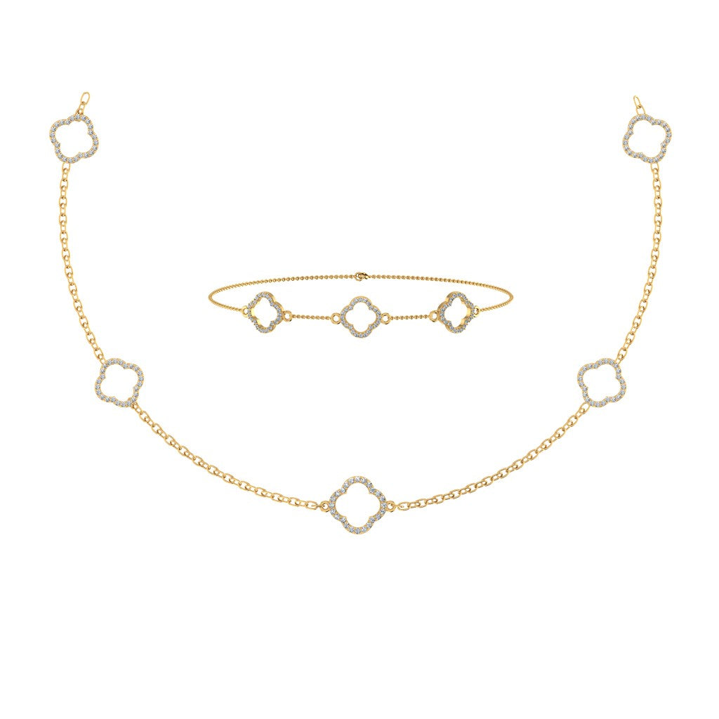 14K Yellow Gold Round Link Necklace Bracelet Set 1-1/6 Cttw